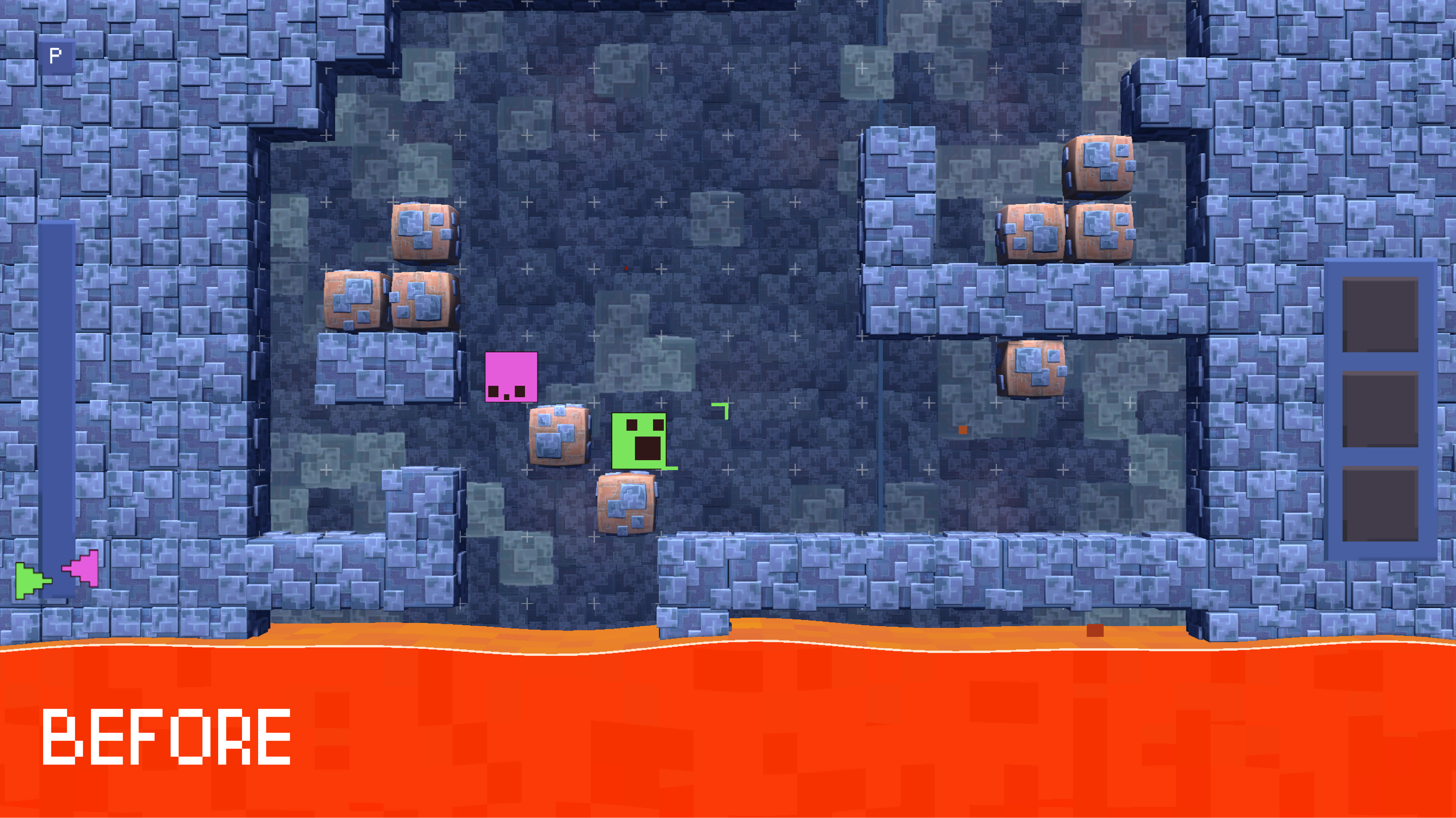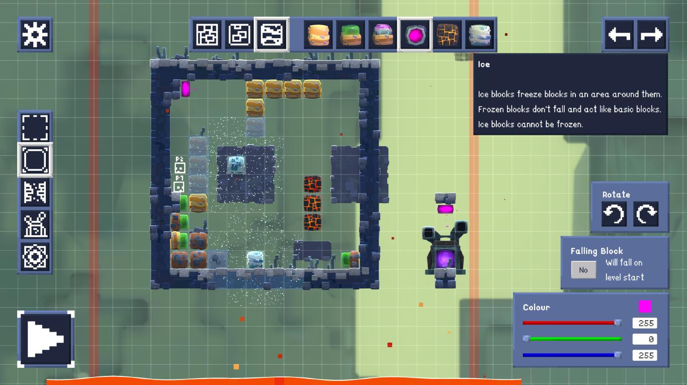The Blocklets currently have placeholder visuals and are waiting for their fancy new animations. Portals have a snazzy new look, and the ice block is looking pretty cool! Any ideas on what exactly its mechanics are?