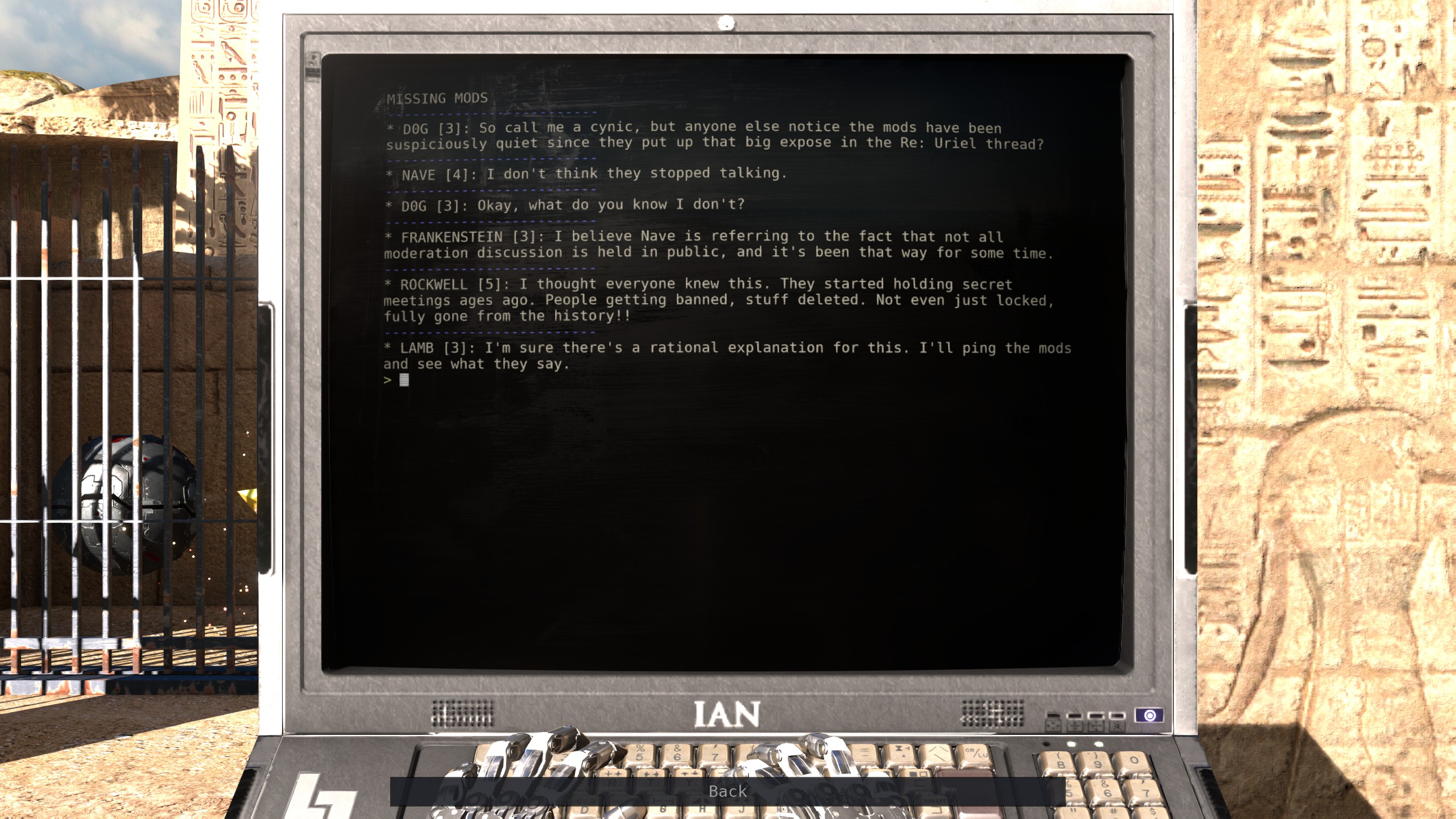 The Talos Principle is a first-person puzzle game in the tradition of philosophical science fiction. Made by Croteam and written by Tom Jubert (FTL, The Swapper) and Jonas Kyratzes (The Sea Will Claim Everything).