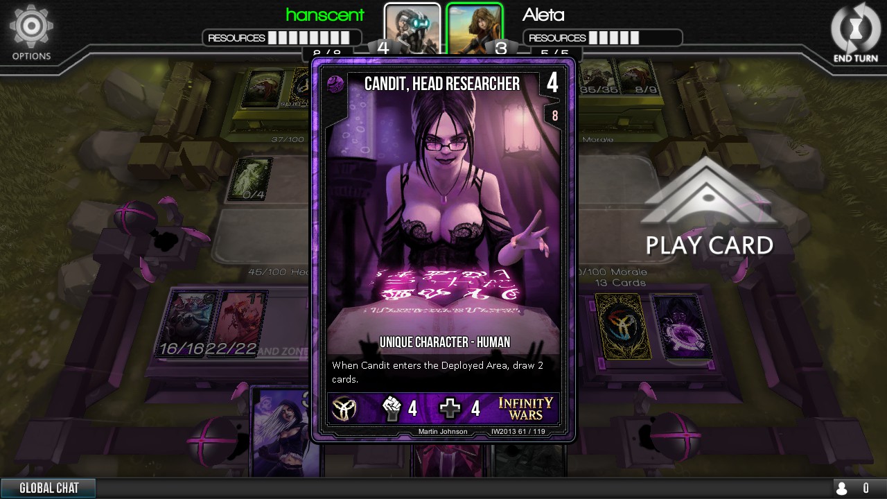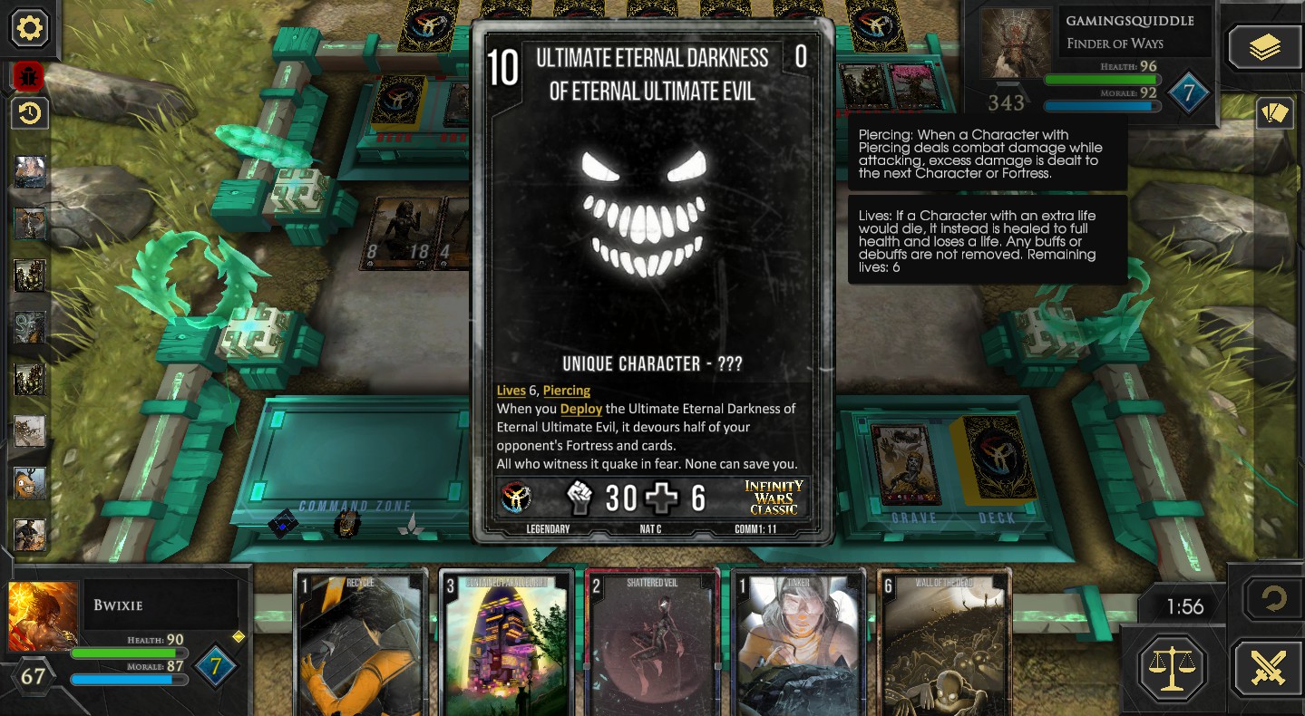 Outplay your opponent with simultaneous turns and commander-driven deck-building in a fully free-to-play PvP experience. Build your deck from 1000+ cards across 8 unique factions, and face opponents on a truly level playing field. In Infinity Wars, skill is the only factor that determines victory!