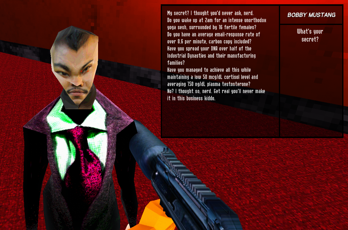 DOPAMINE - NON STOP KILLING - BLOOD - BUNNY HOPPING - HIGH SKILL CEILING - MORE BLOOD - NO HAND HOLDING - STOCK TRADING - EVEN MORE BLOOD - ODDLY SENSUAL