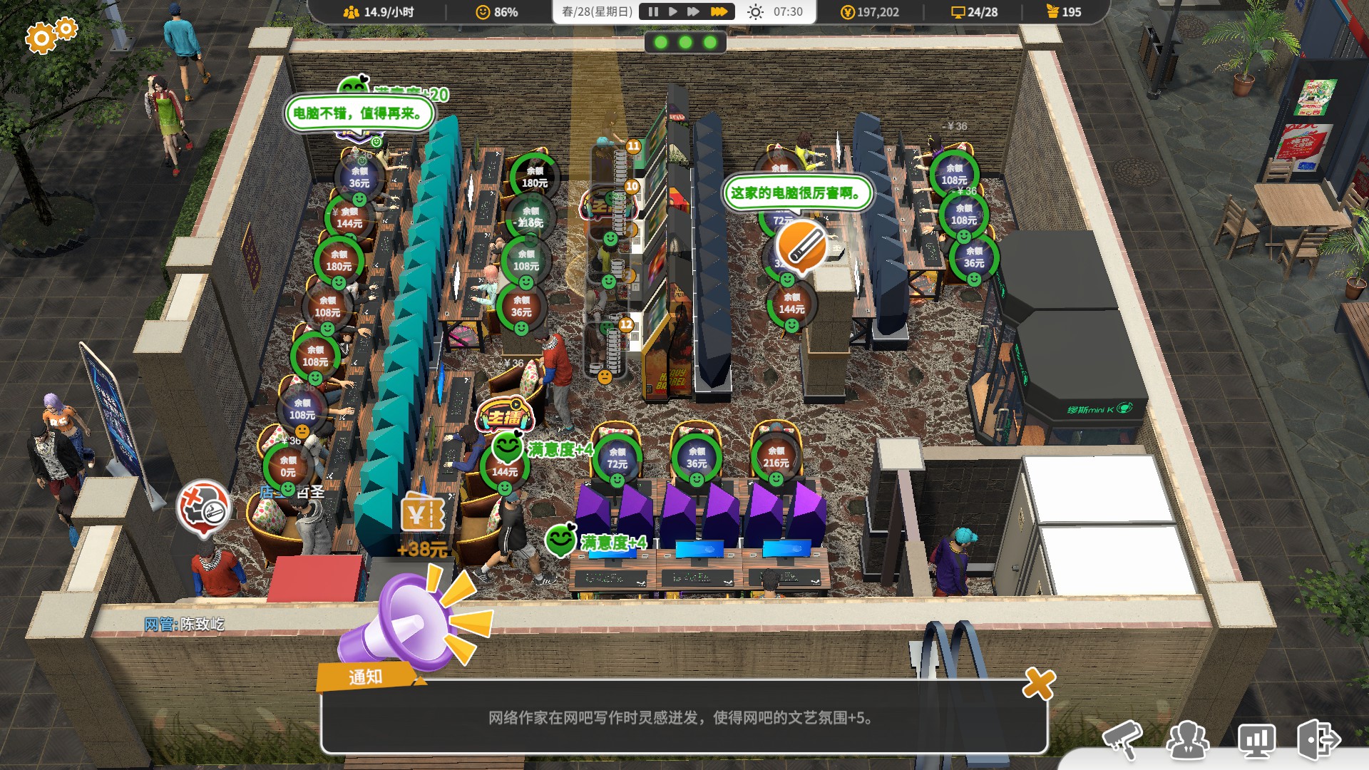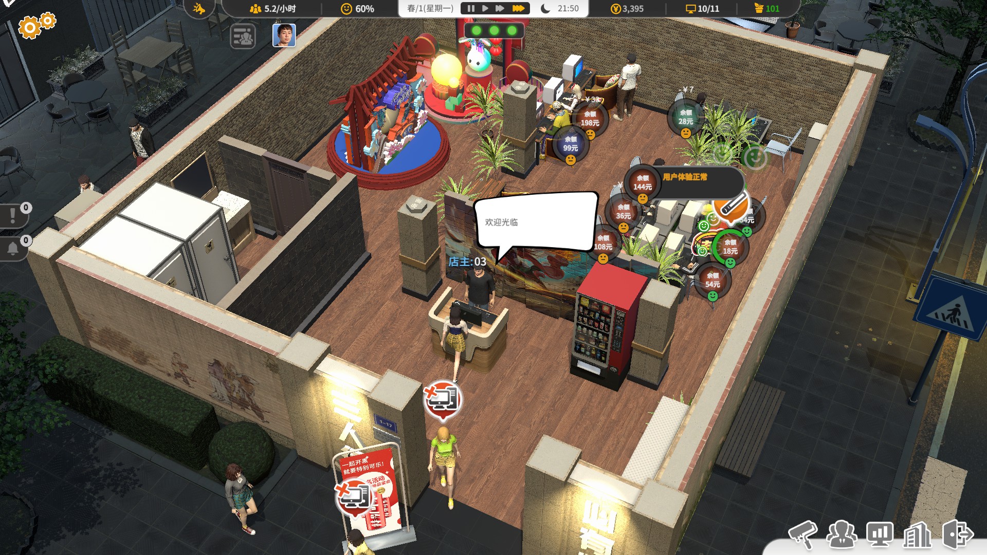 This is a business simulation + construction game. It tells the evolution history of Internet cafes that began in the 1990s, and imagines the future of internet cafes. There are also some small emotional stories.