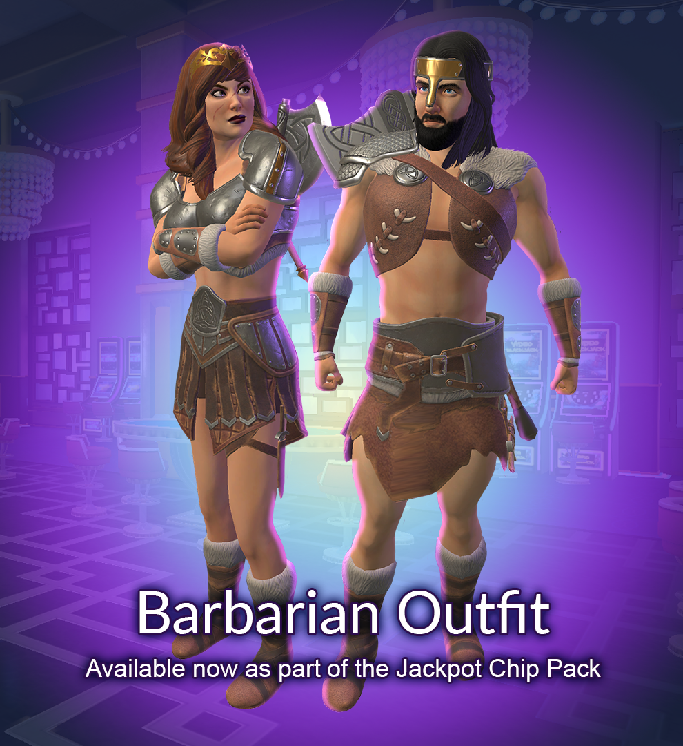 You can't always trust in luck. But as the legends go, there is one thing that you can truly trust: steel. Arm yourself with these new Barbarian Outfits included in April's Jackpot Pack, and you'll receive the power of steel and a treasure trove of riches: one million chips to use at the Four Kings!