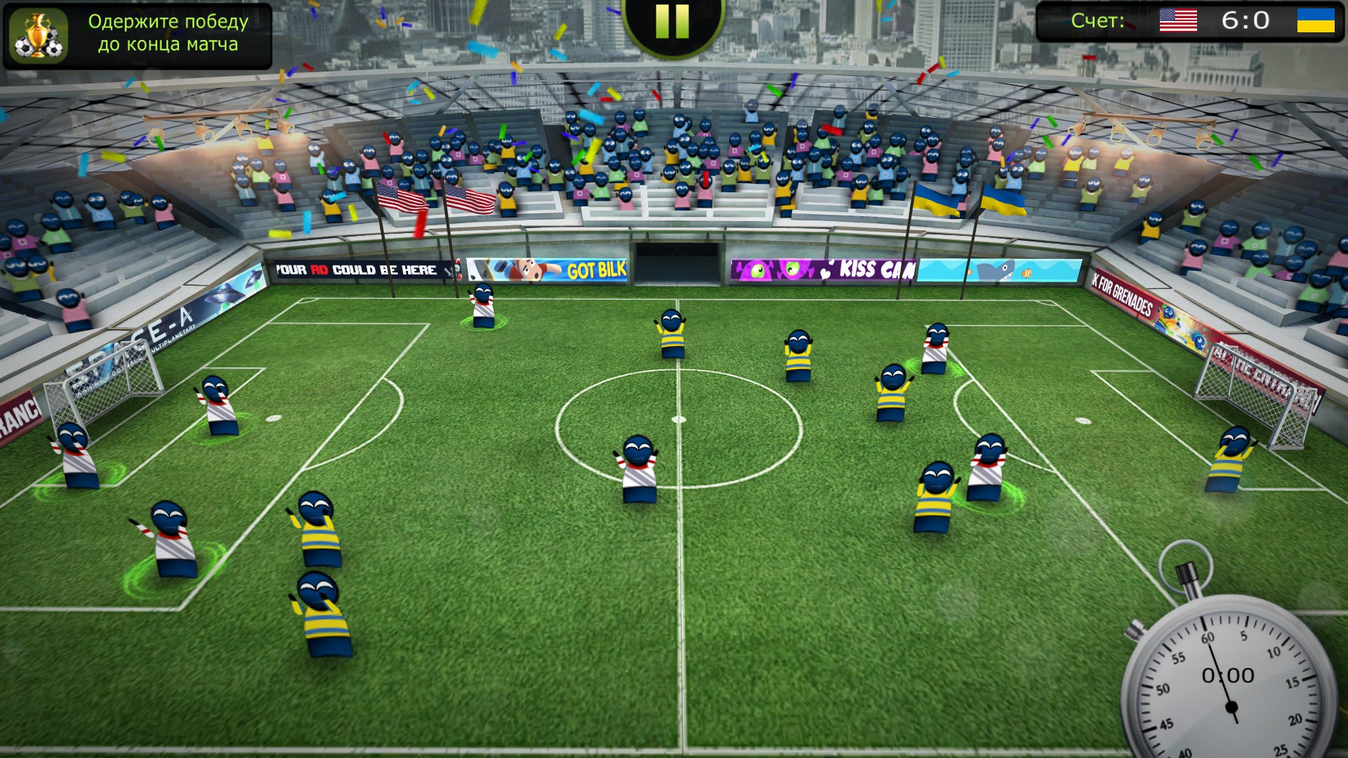 The craziest soccer management game you have ever played! Use mines, aliens, cows, guns and other crazy cheats to decimate the opposing team and protect your players. Play against your friends or AI opponents!