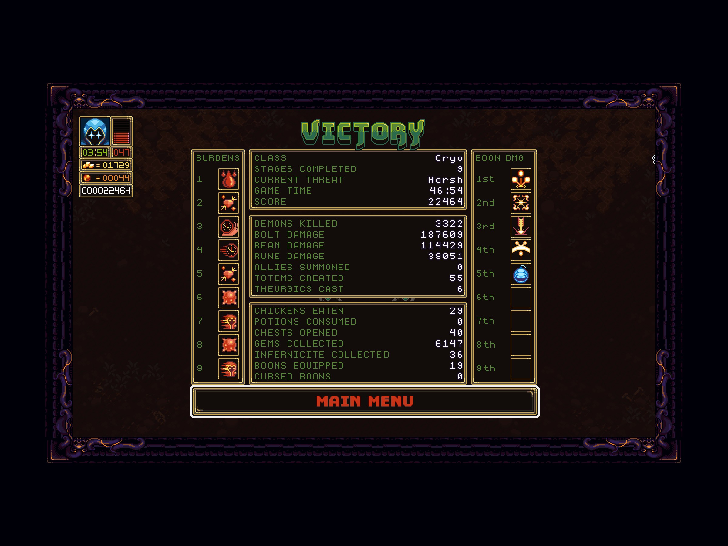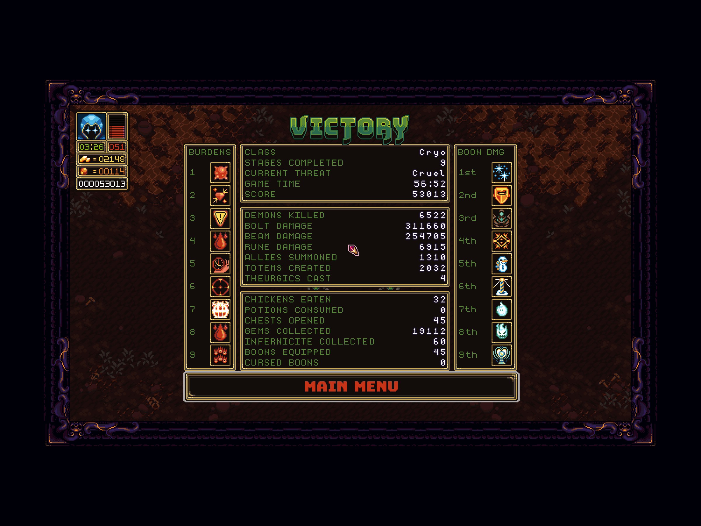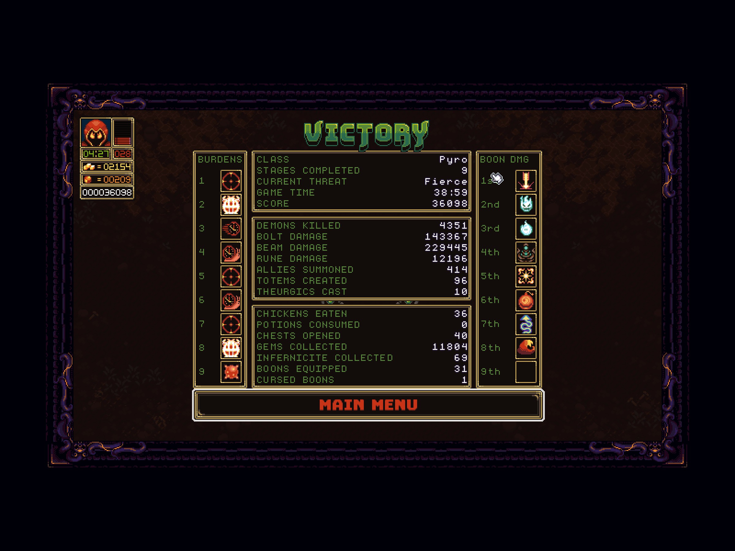 Boons & Burdens is a single player action-roguelike set in the depths of hell. Battle hordes of demons through 12 levels, collect gems to purchase powerful boons, and choose from deadly burdens that alter the game's difficulty. Will you be the paragon of power or the architect of your own defeat?