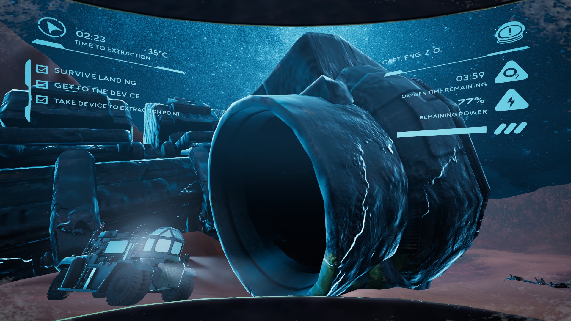 Explore abandoned outposts on the surface of Mars, driving a nuclear powered vehicle built in 1942. Find books and discs while you uncover the mysteries hidden under the red Martian sand.
