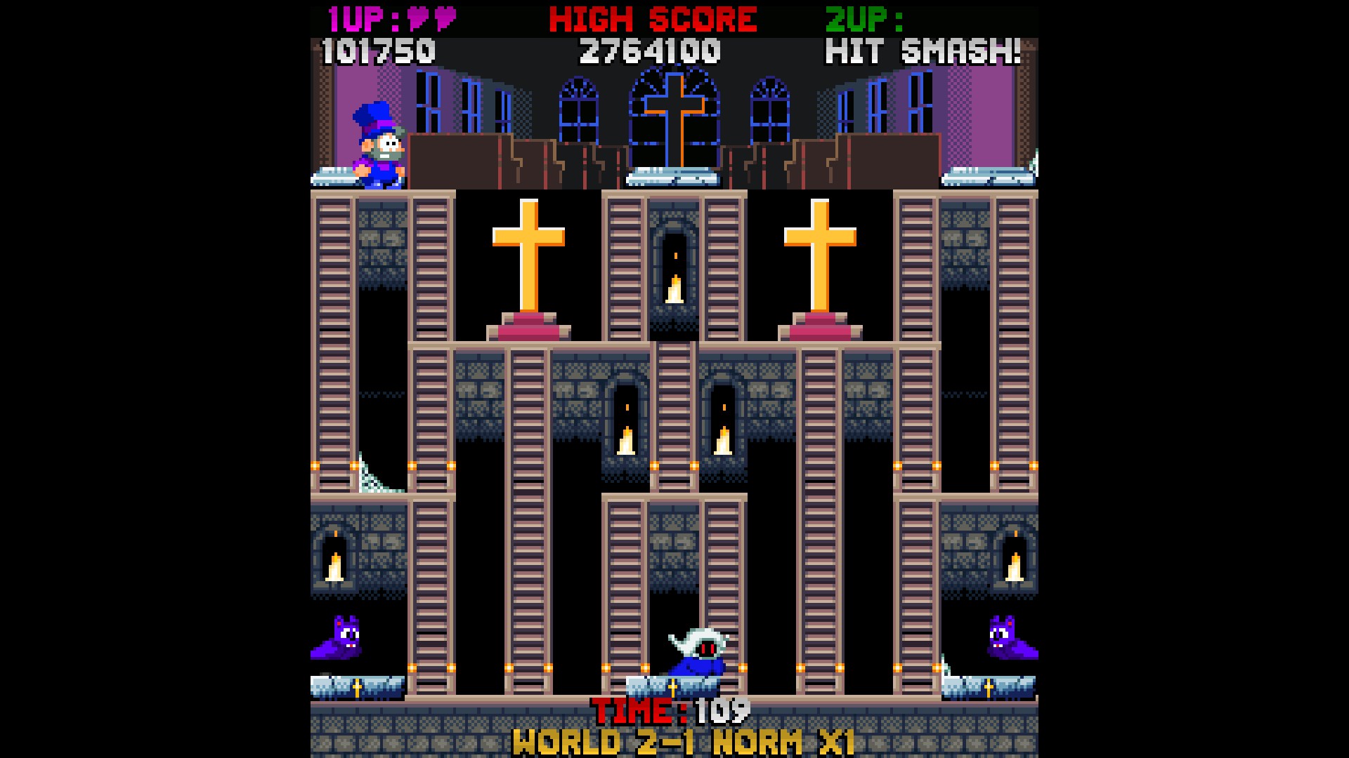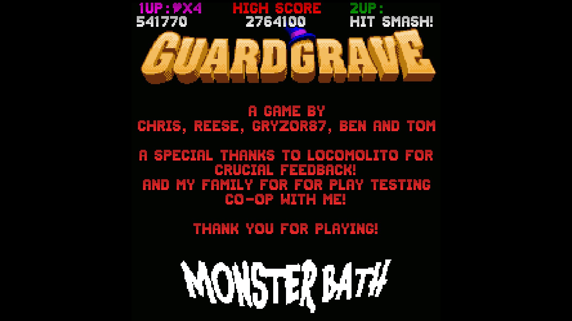GuardGrave is an old school styled game in the vein of BurgerTime. Players must close the coffins on each stage before the sun comes up. 7 Worlds, 7 Bosses and 37 Stages of co-op monster bashing mayhem!