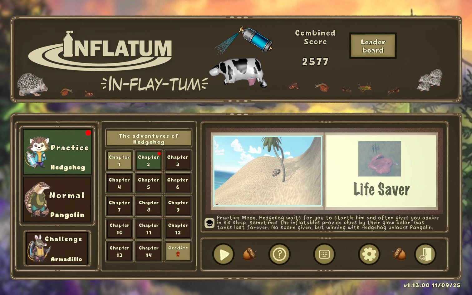 Inflatum is a cute animal rescue game. Rescue the poor hapless critter who is only trying to reach his stranded family. Save him from the hazards littering the landscape. Use gas tanks to inflate objects to come to the critter's aid.