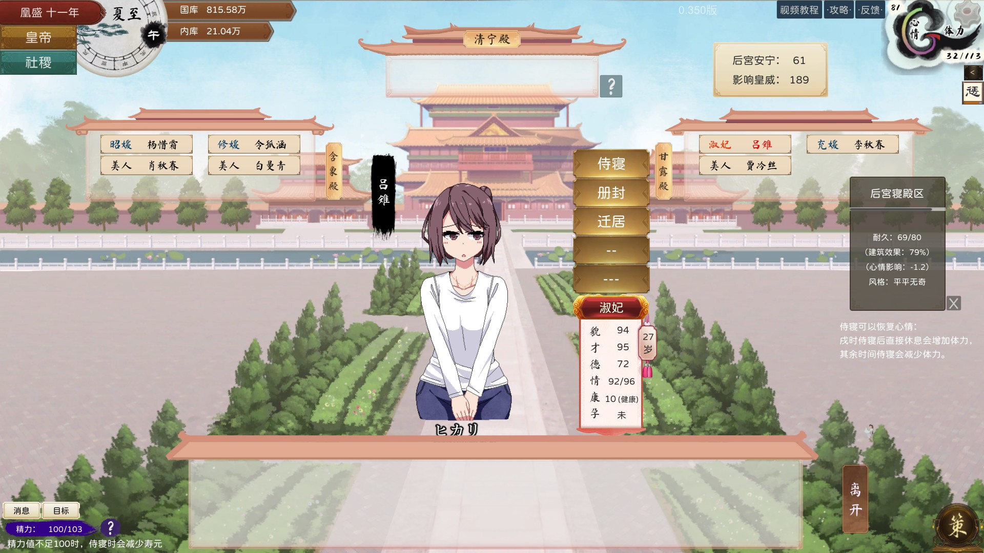 The Emperor and State is a turn-based strategy game that simulates the rule of an ancient feudal monarch. It involves the administration, policy adjustment, diplomatic checks and balances, national wars, as well as the emperor's self-cultivation, the cultivation of successors and so on.