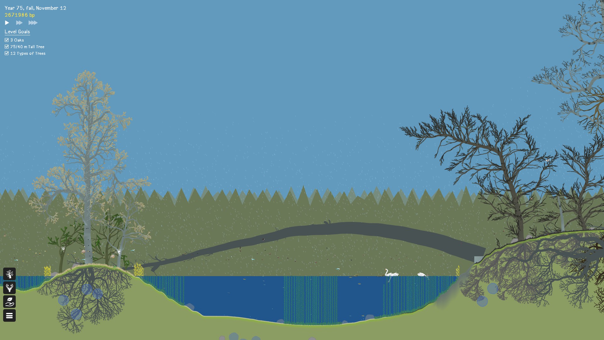 A forest simulator where you grow trees and create habitats for animals, plants and insects. Click on animals to make them poop, hunt, dig, cut and twerk! Start with a few basic seeds and attempt to grow a thriving ecosystem.