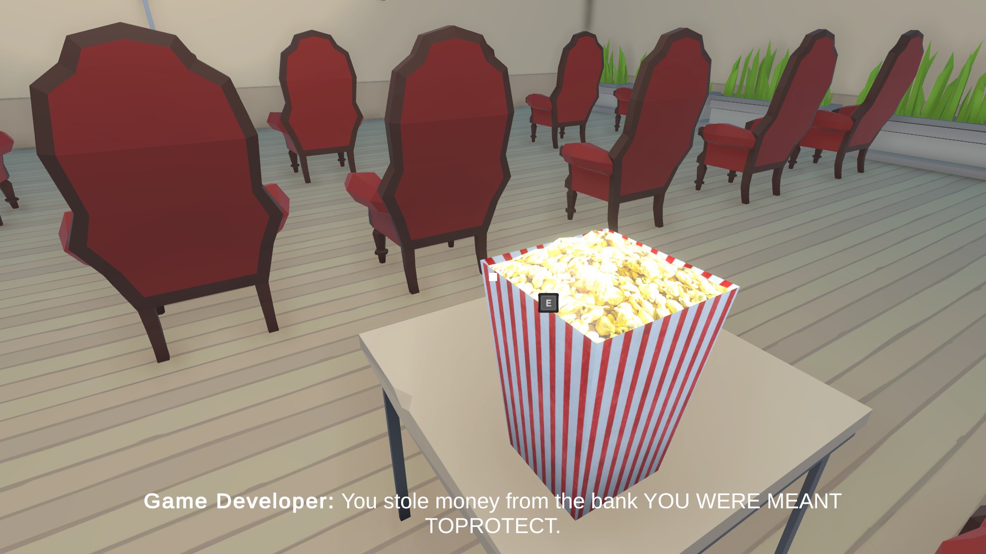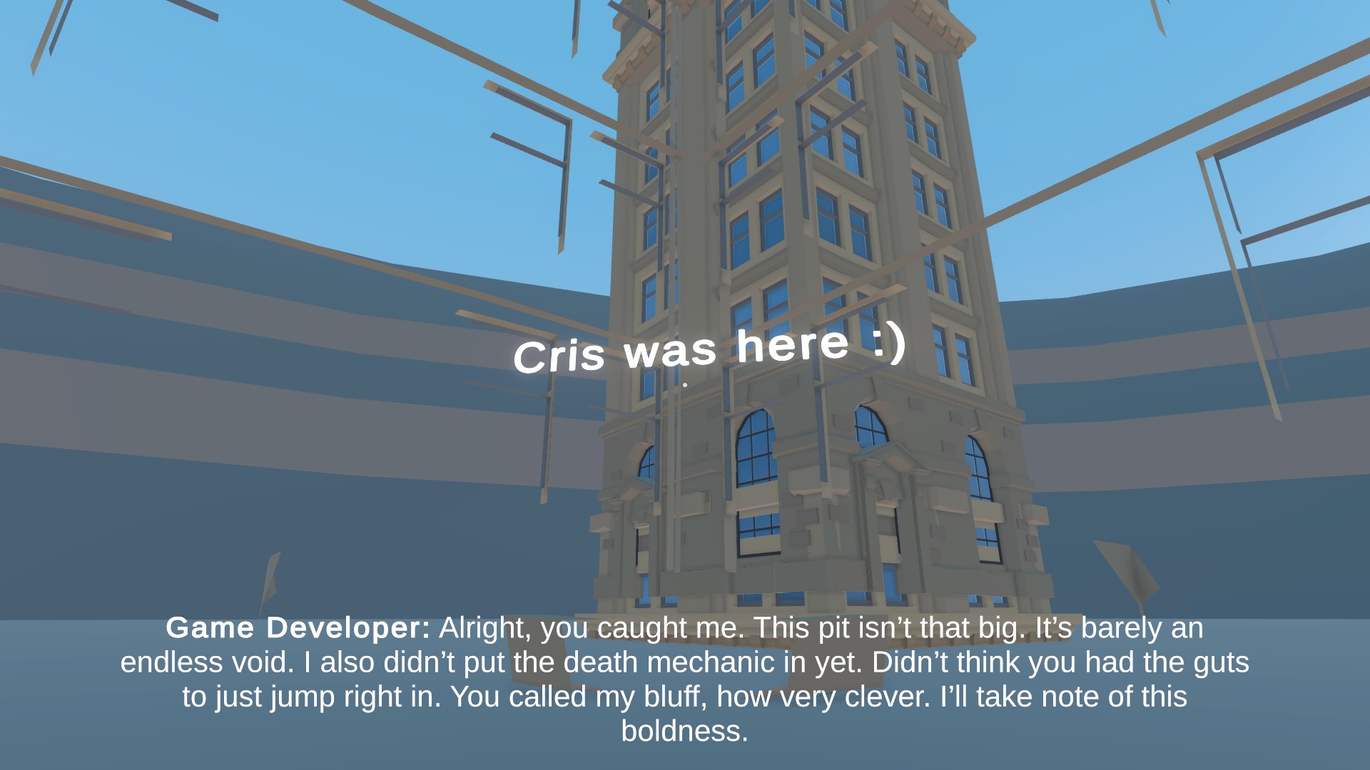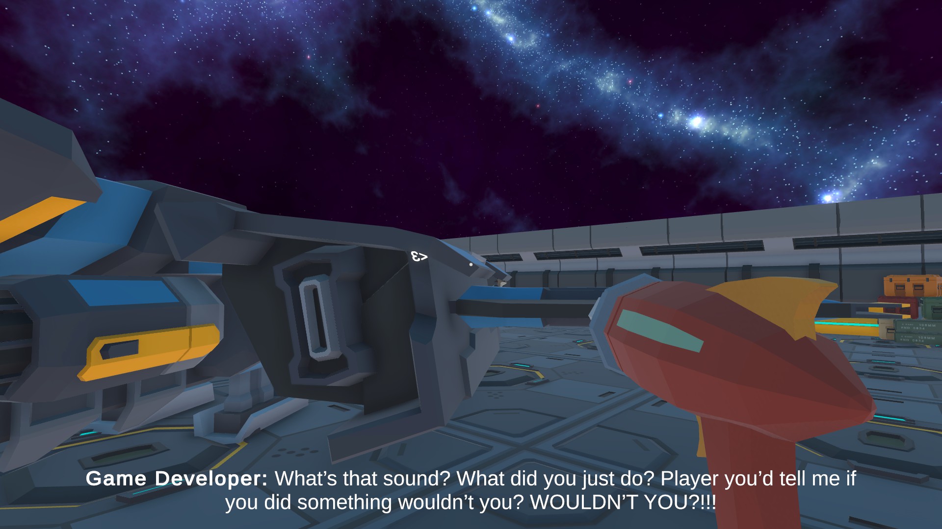 Unnamed Project is a game about playtesting. You are the player, who’s job is to explore a game developer’s projects and touch everything possible. Touching any and everything will help the game developer in every way possible, so don’t listen to their concerns. Thanks ahead of time.