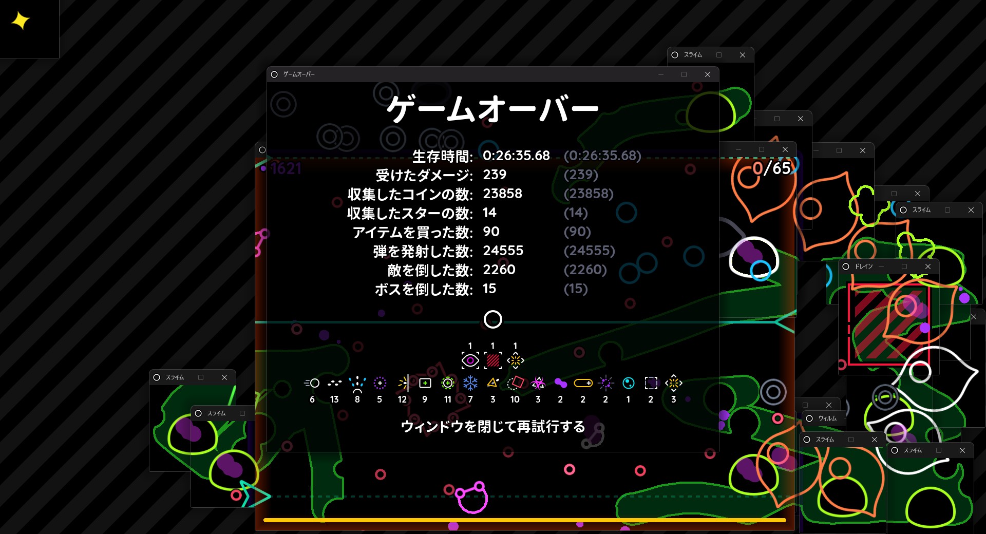 Windowkill is a twin-stick shooter, but the game window itself is constantly closing in on you. Shoot the window edges to push it around your screen as you fight and dodge enemies and bosses in their own windows.