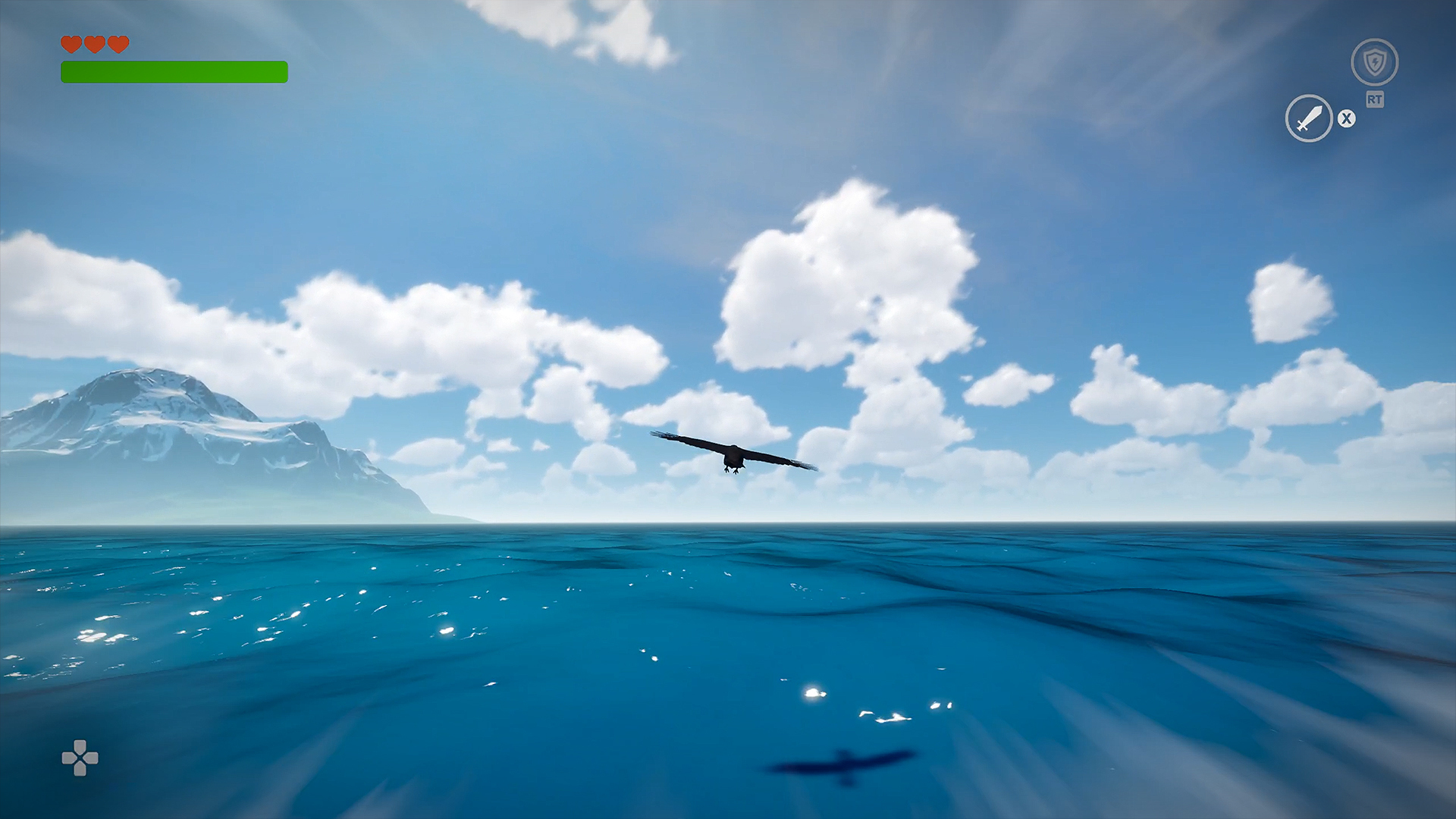 The raven has an ability called "Flap" - with this, the raven takes a very strong wing flap and gains an instant speed boost.