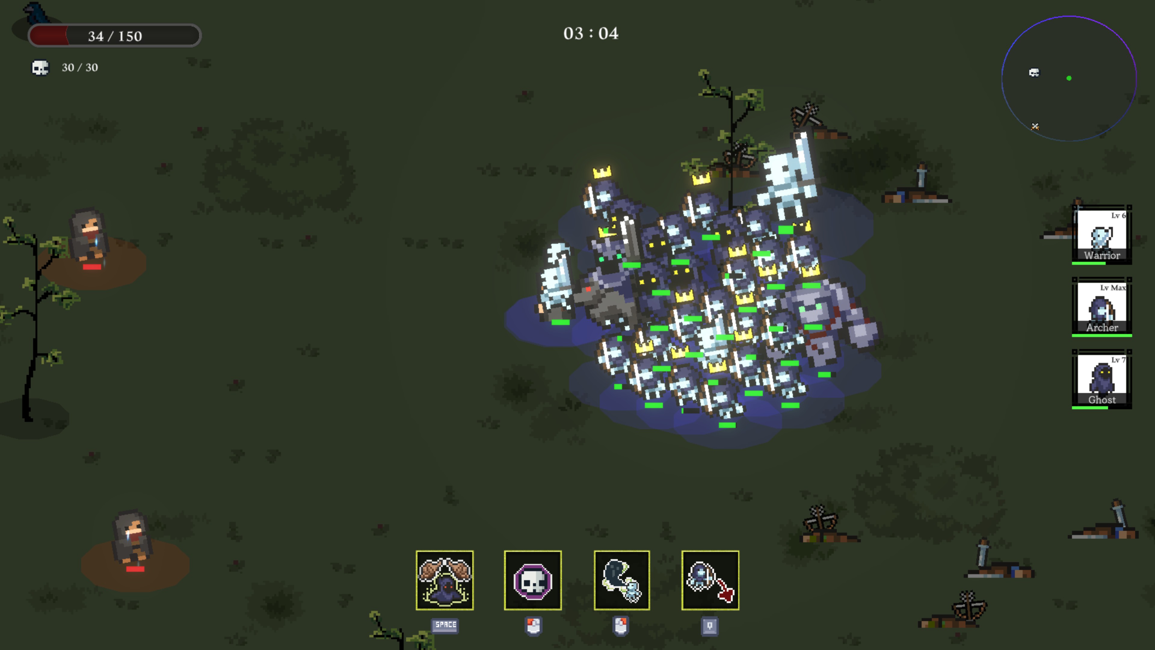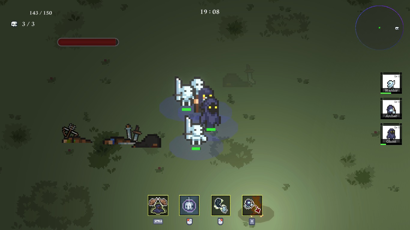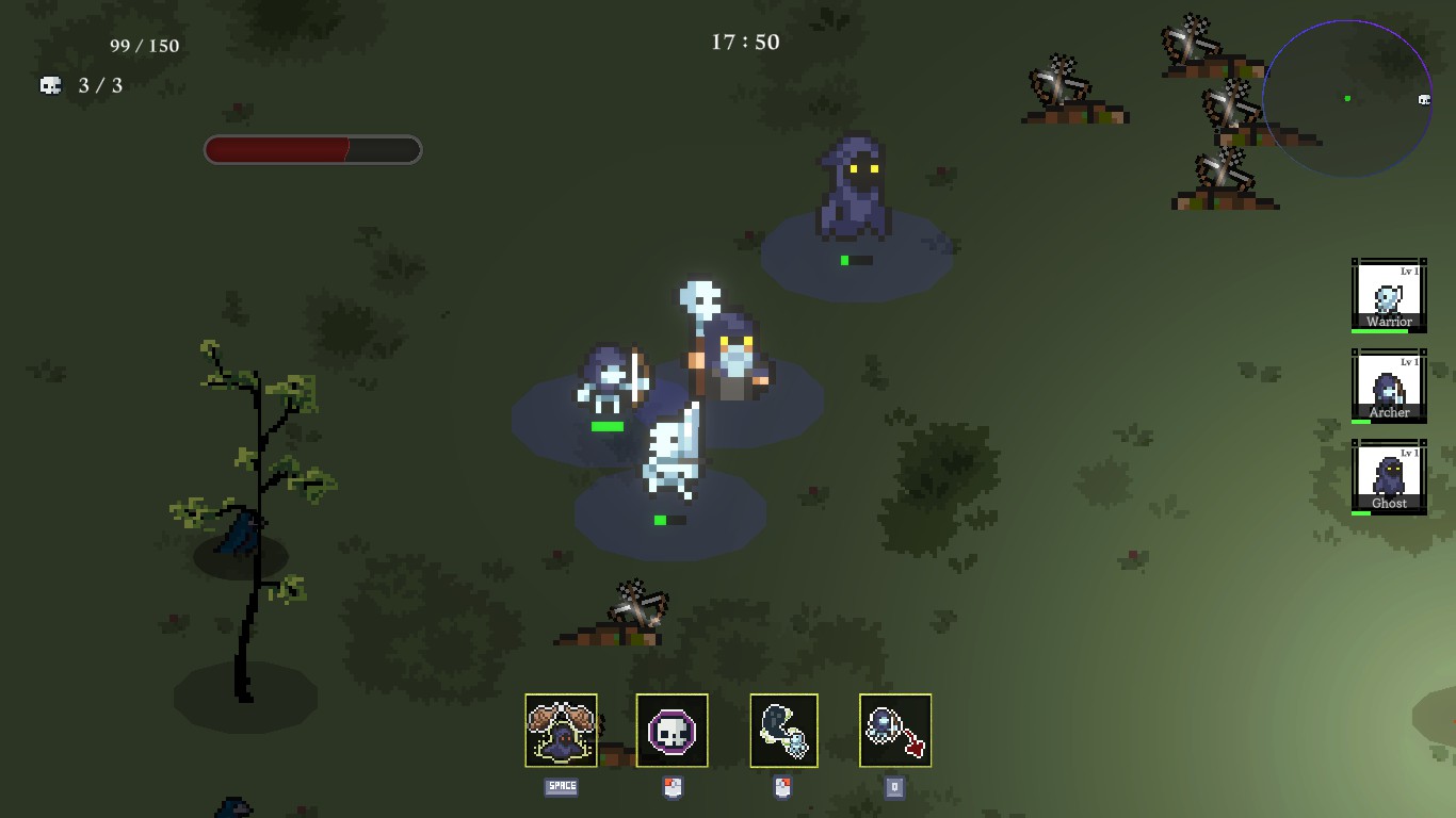 Master the dark art of necromancy in a 2D top-down strategy game. Unleash and lead your undead legions to defeat and dominate enemy waves in this action-packed adventure.