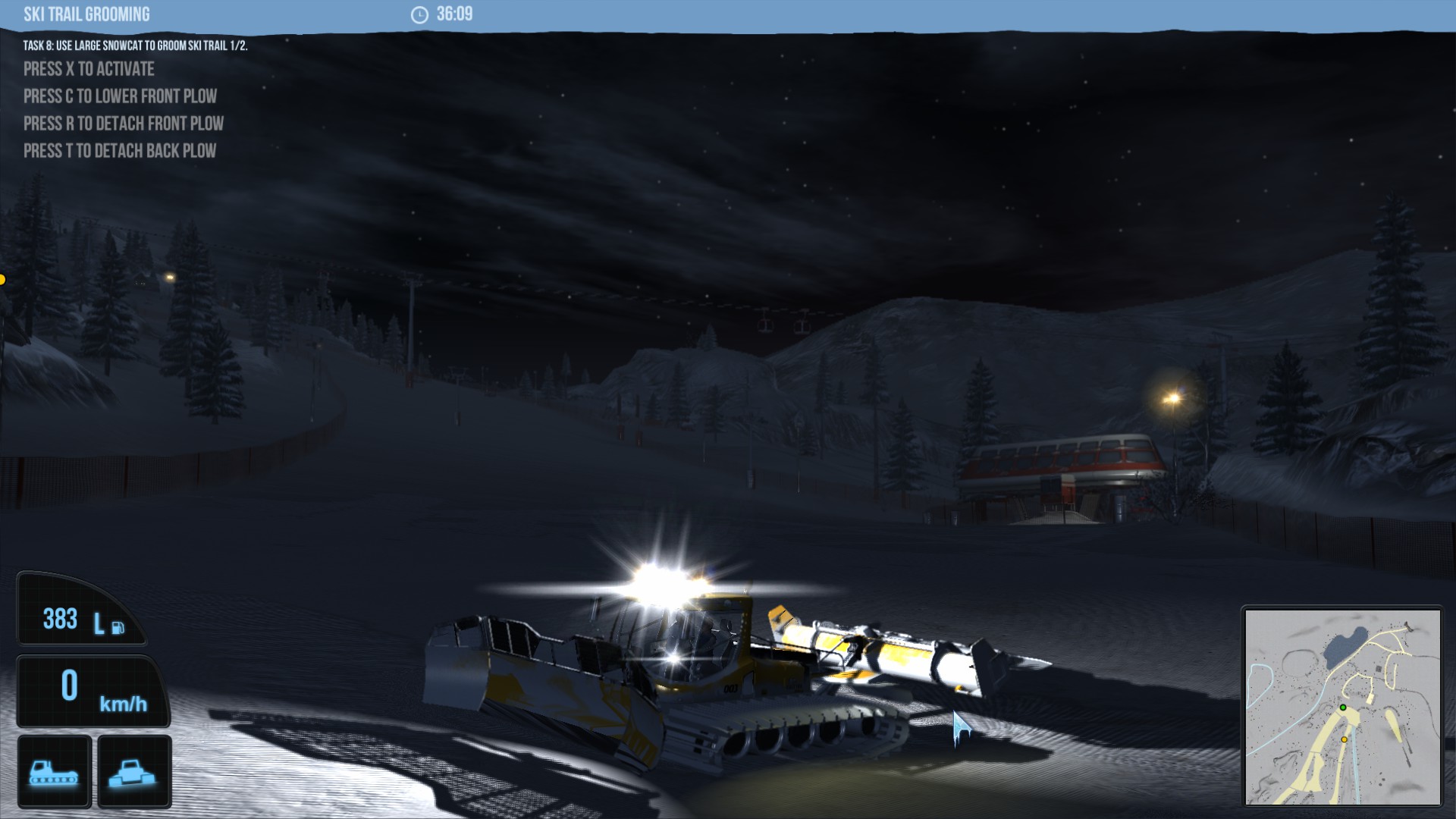 Everybody knows the giant vehicles preparing the white tracks for skier. No slope is too steep and no snowbank too huge. As driver of such a monster, it’s your job to prepare the runs in a giant ski area.