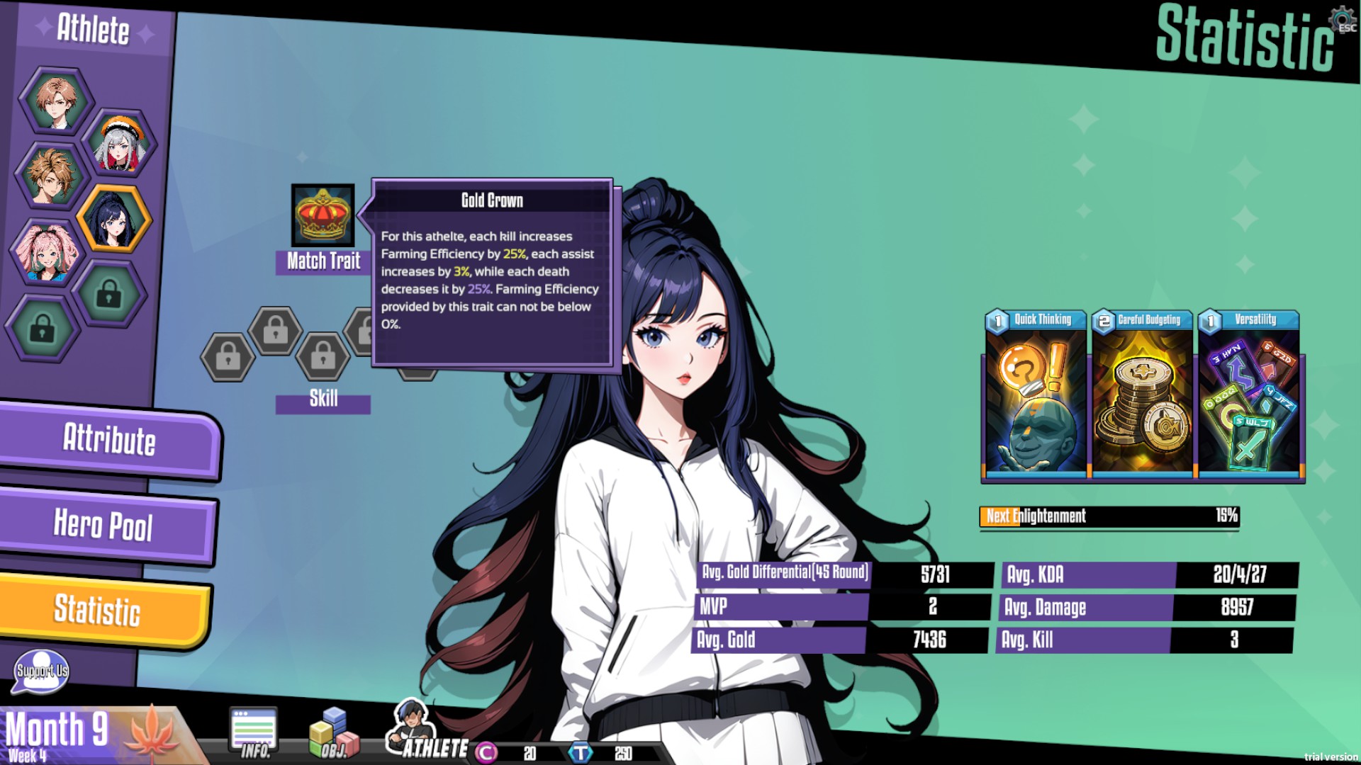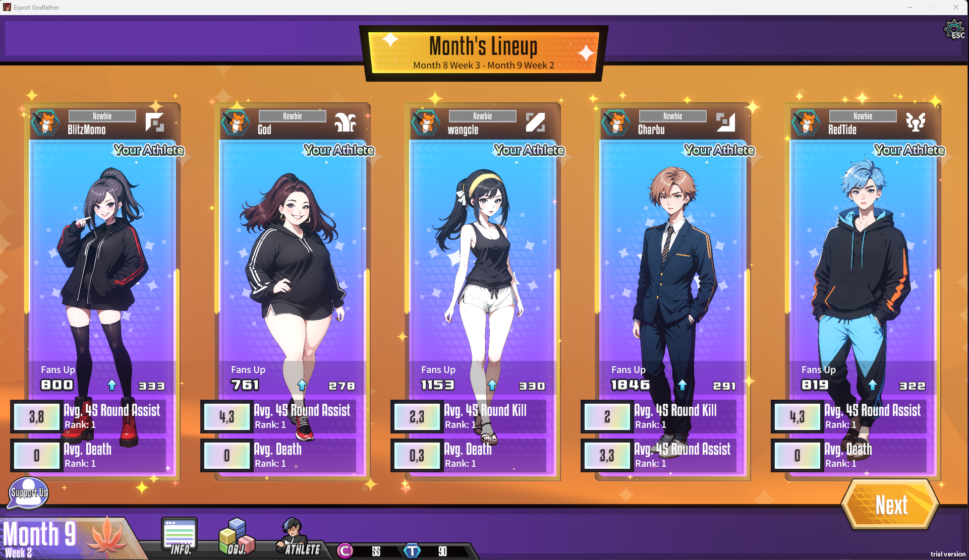 E-sports Godfather is a Deck-building game simulating MOBA e-sports. You will play a role as team coach and build your team. You need to train players and make strategies in various game versions, beat other teams and finally, take the Champion of the World. Be nobody, or lead your team to dominate!