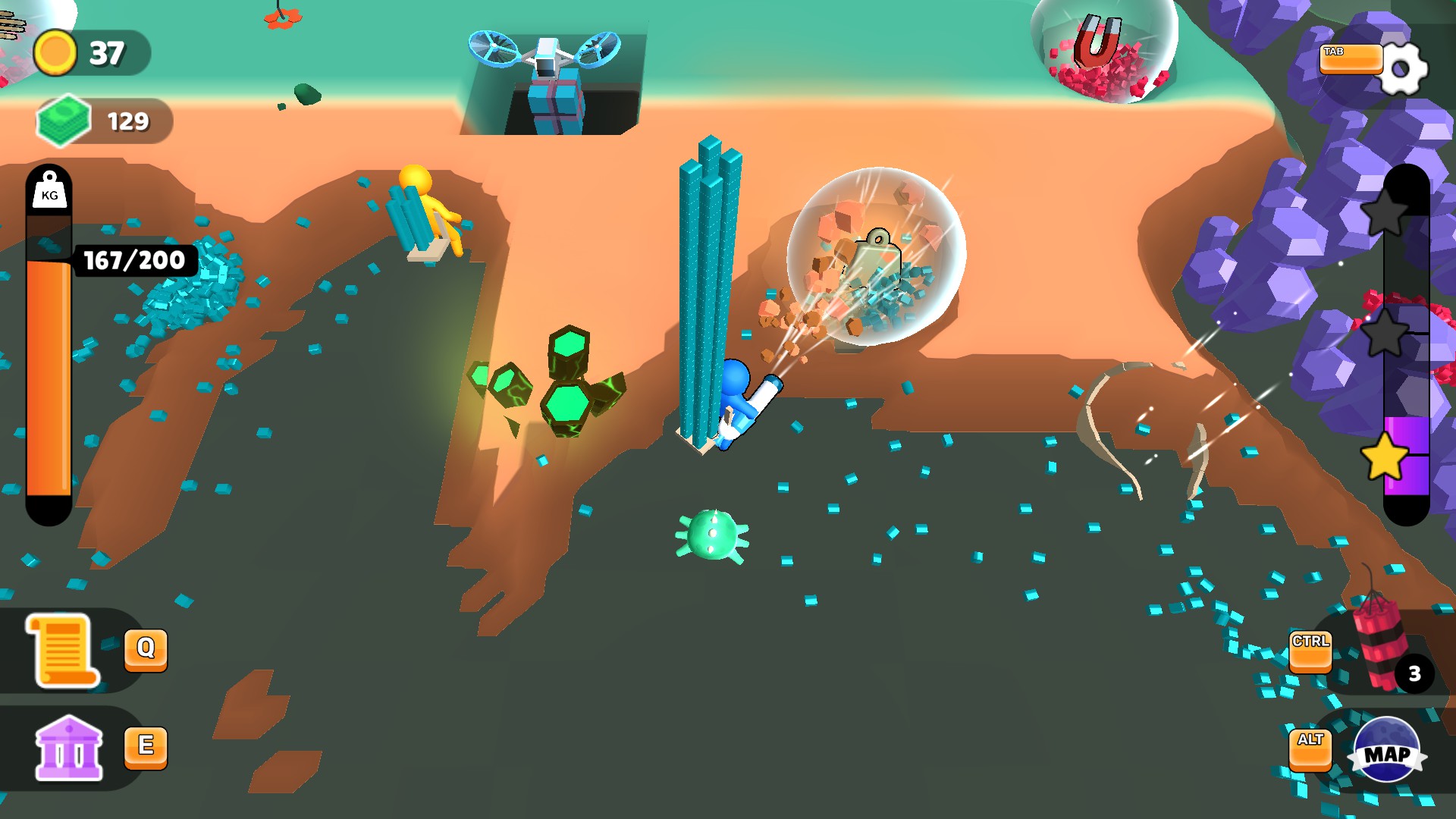 Embark on a Colorful Journey Through the Galaxy! Explore new planets and mine various minerals using your vacuum gun!