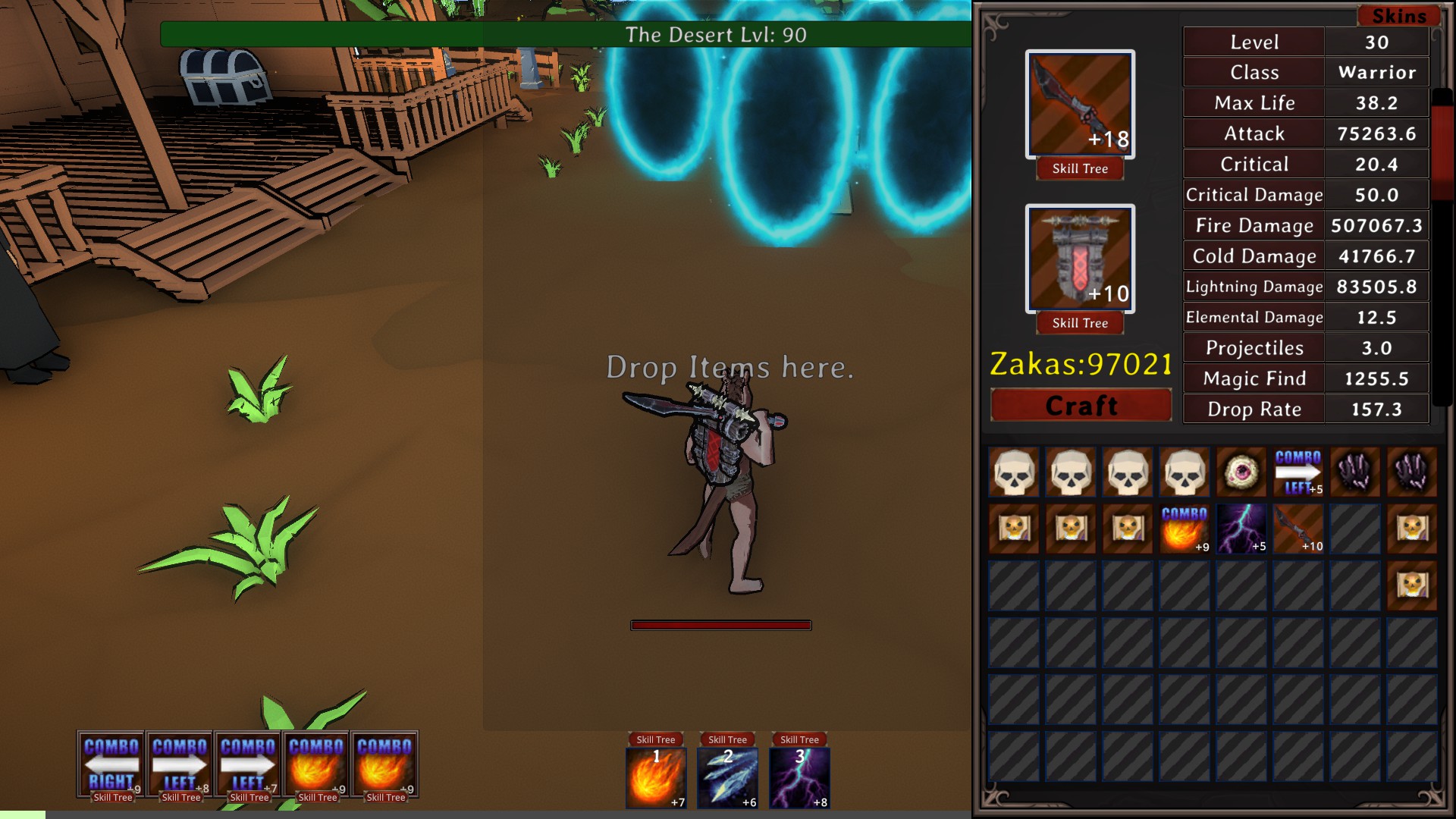 Manzaka is a fast-paced progression game where you gain power, experiment with builds, and destroy everything. Create your own procedural skill tree, fuse items into stronger versions, and discover powerful combinations as you play.