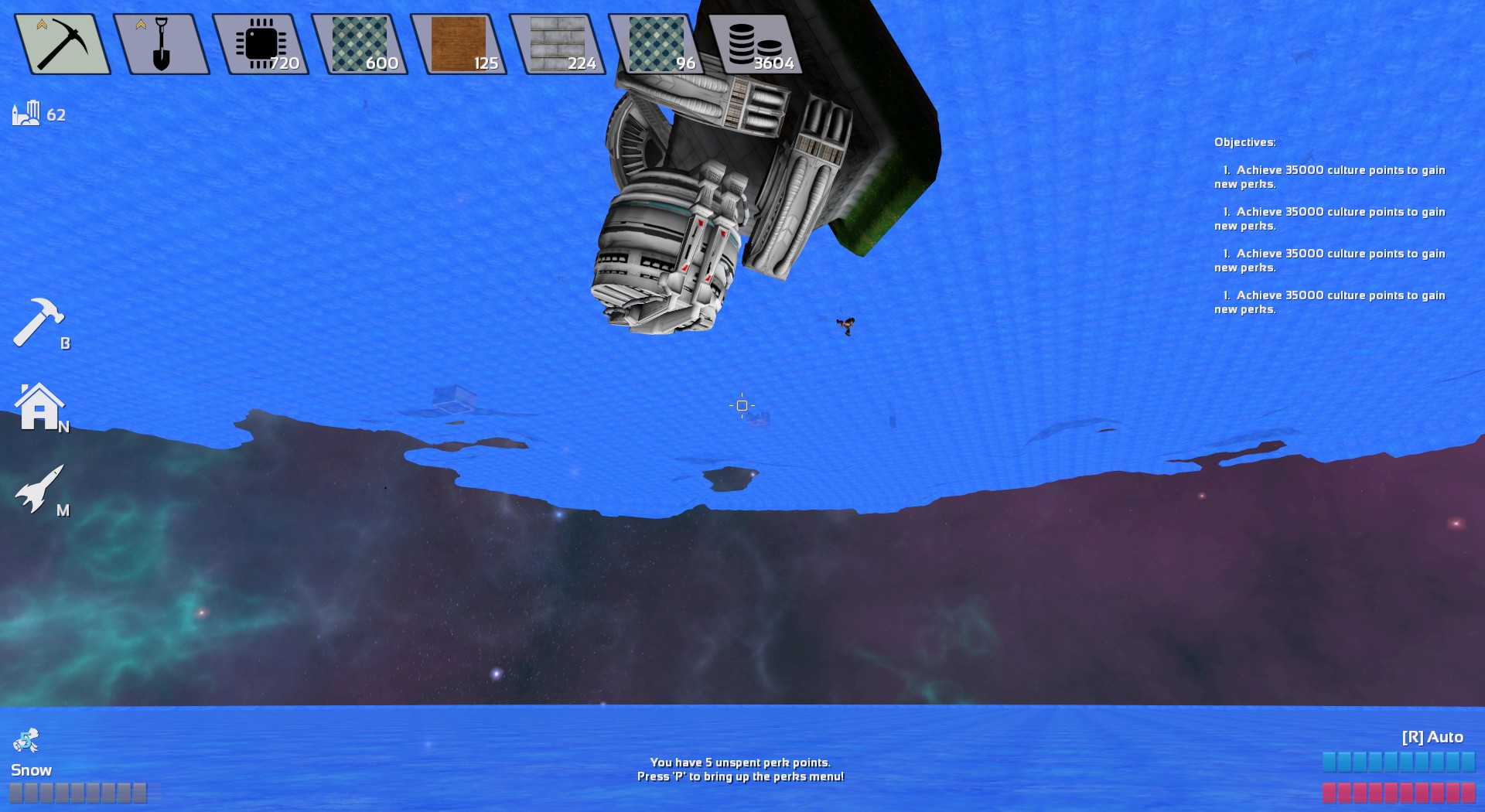 Masterspace is a game about mining, creating and exploring, featuring fully destructible environments and spaceships that allow you to travel between different planets. Use explosives to mine metal ores or watch your newly constructed home get smashed to pieces by a meteorite impact.