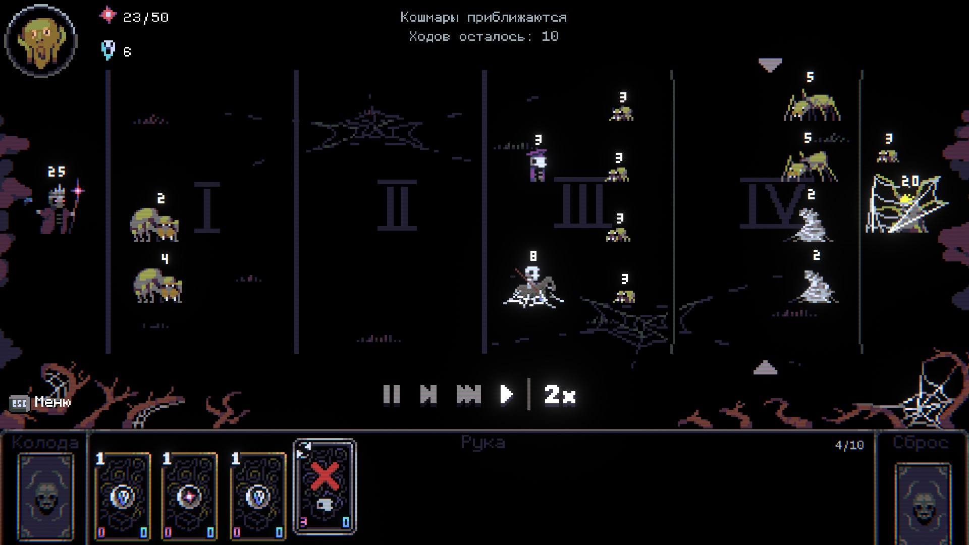 Necroking is a turn-based tactics roguelite with vast deckbuilding. You play as a Master of Necromancy. Build your skulls deck, raise skeletons and other scum to defeat settlements desecrated by life.
