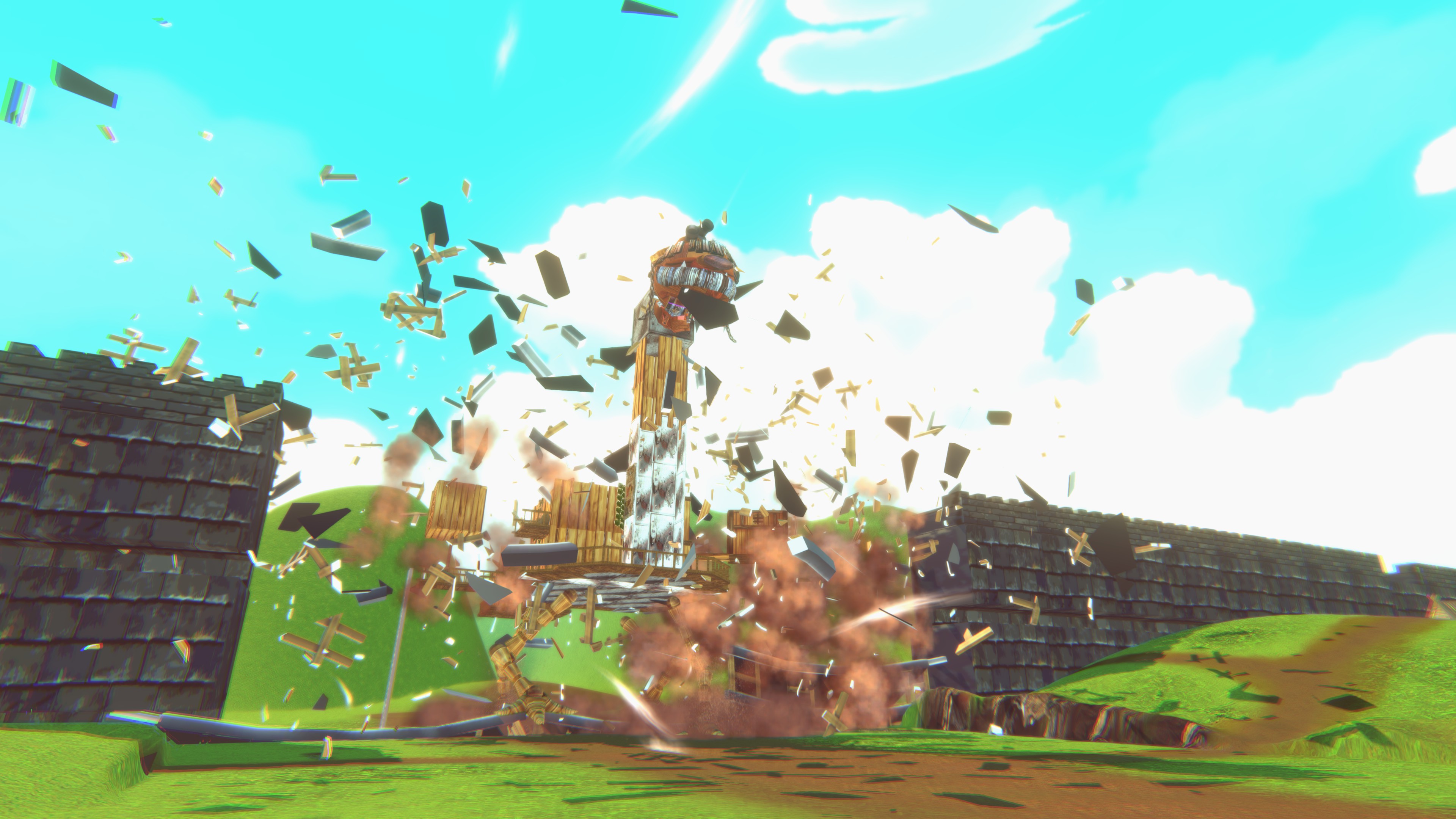 "Meranbaralan" is an exhilarating action game where you burn and destroy a moving wooden fortress called "Onbu". Players will take on the role of a salamander and will board the Onbu, spitting flames, and use bombs to completely destroy the city before it reaches the city!