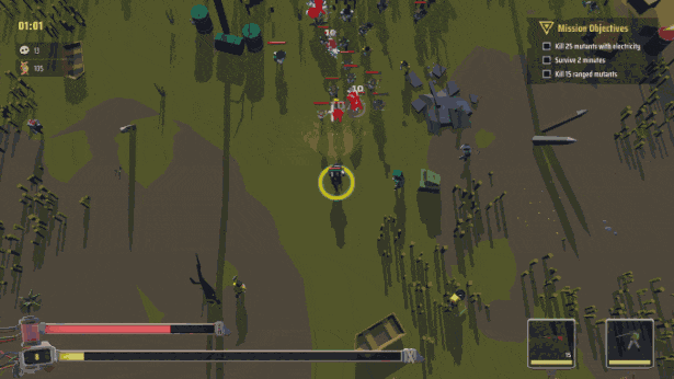 Blast zombies & mutants in this fast-paced post-apocalyptic top-down roguelite! Battle through randomized biomes, swap out unique weapons, equip insane loadouts, and mutate yourself stronger with collected DNA. Die, unlock permanent perks, and dive back into another brutal run!