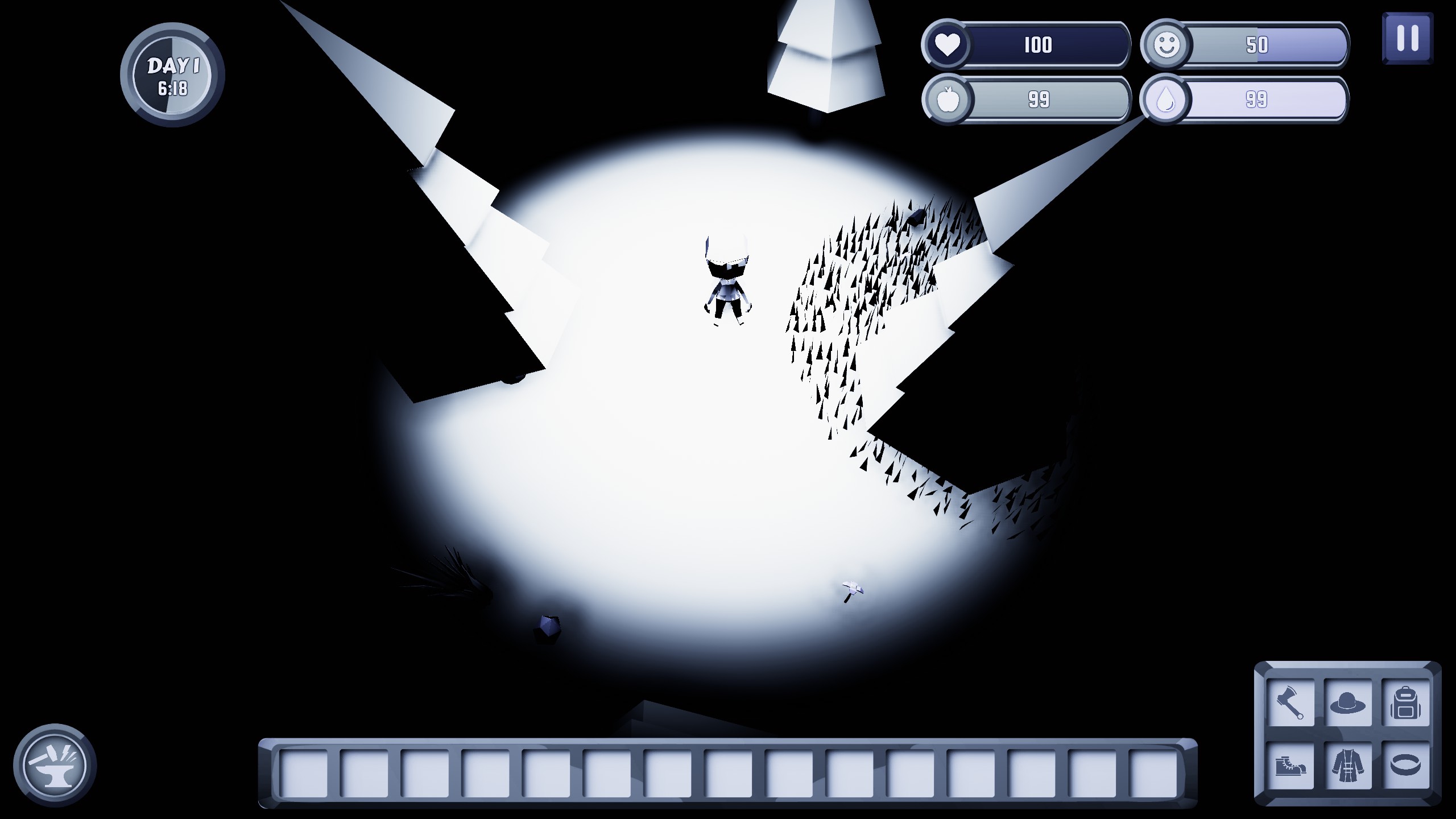 The player needs to survive in the forest. Where dangerous monsters live.