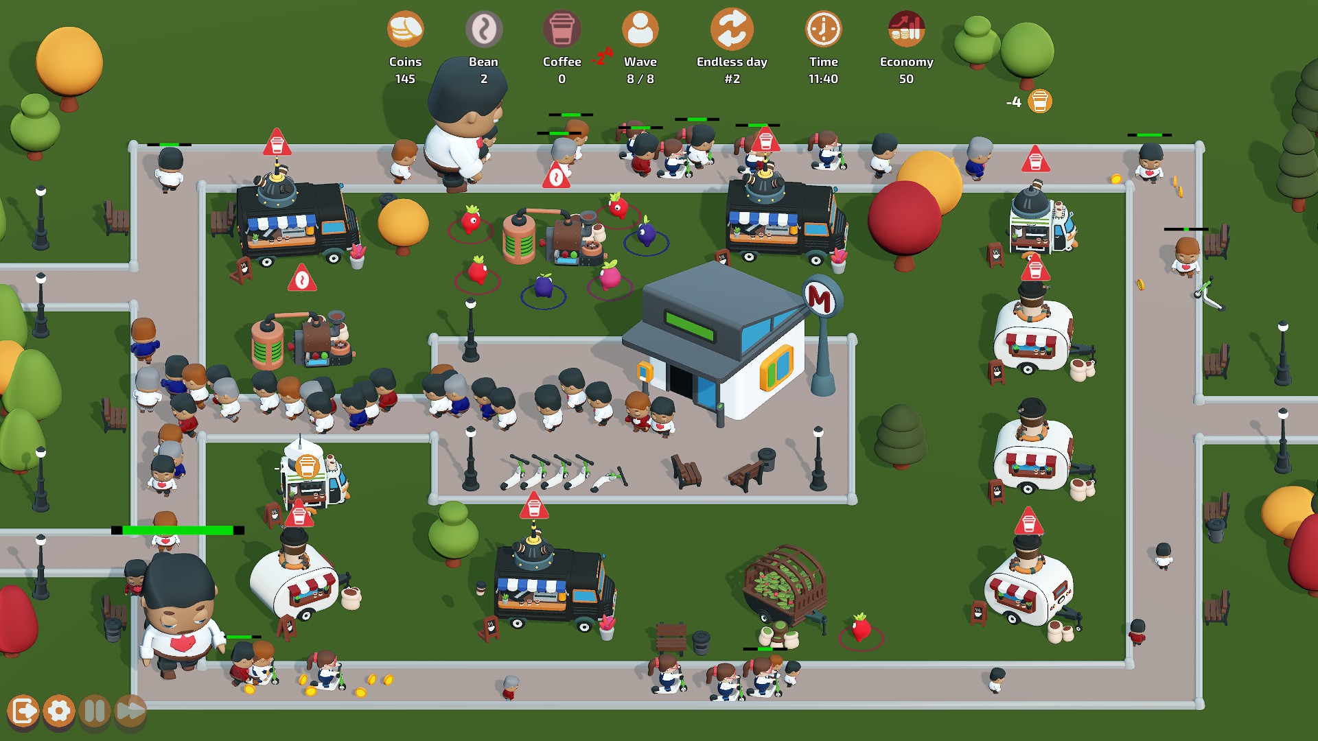 Wake Cup is a caffeinated tower defense & clicker mash-up with rogue-lite meta progression. Shoot coffee to exhausted workers on a boring Monday morning to keep them energised. The coffee must flow!