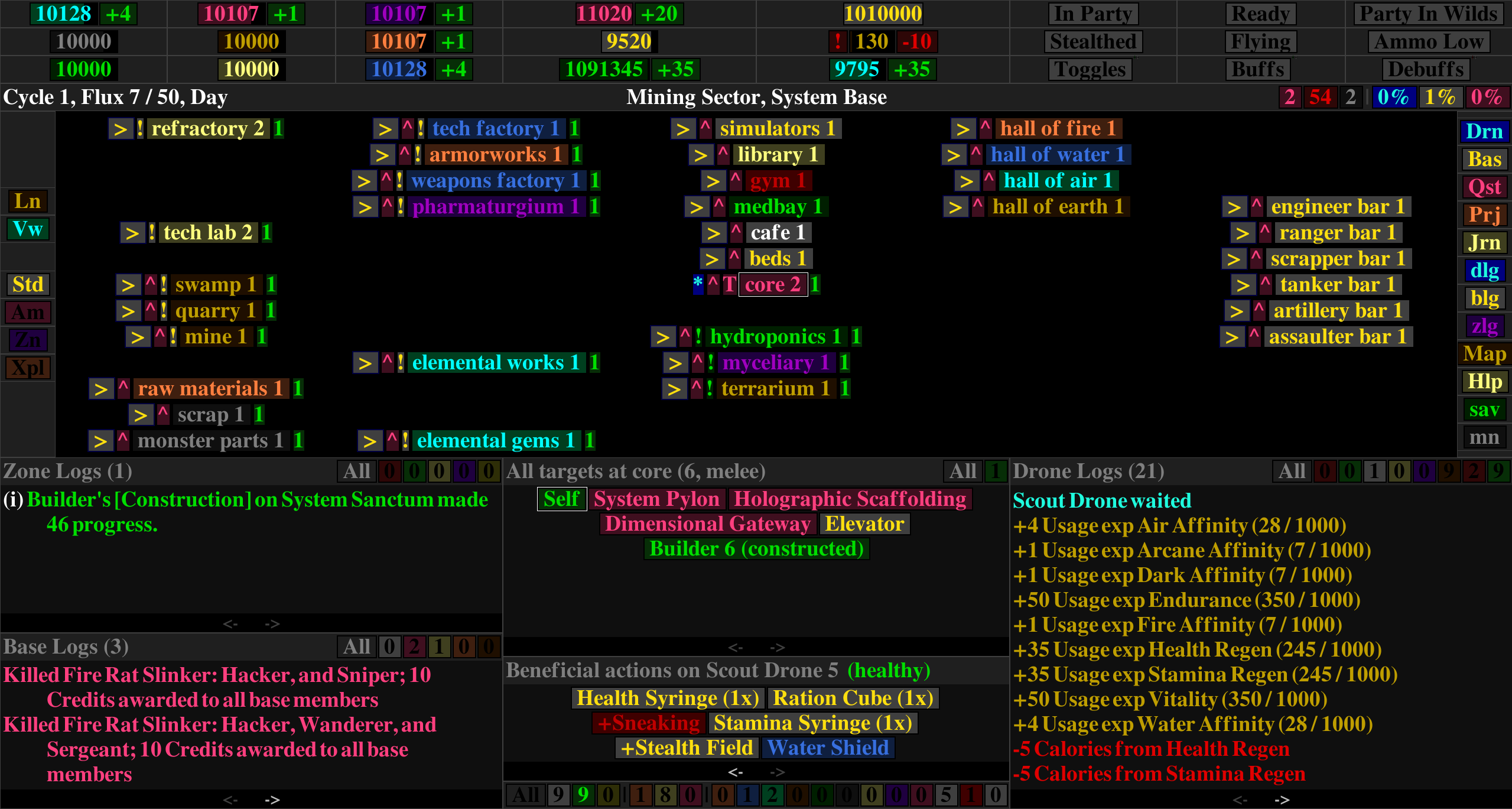 A magitech, post-apocalyptic, turn-based RPG. Assist your faction with exploration, resource gathering, construction, research, item fabrication, and monster extermination, while absorbing ambient mana and leveling up your System drone.