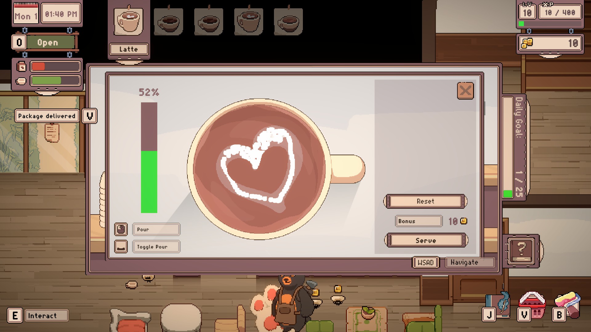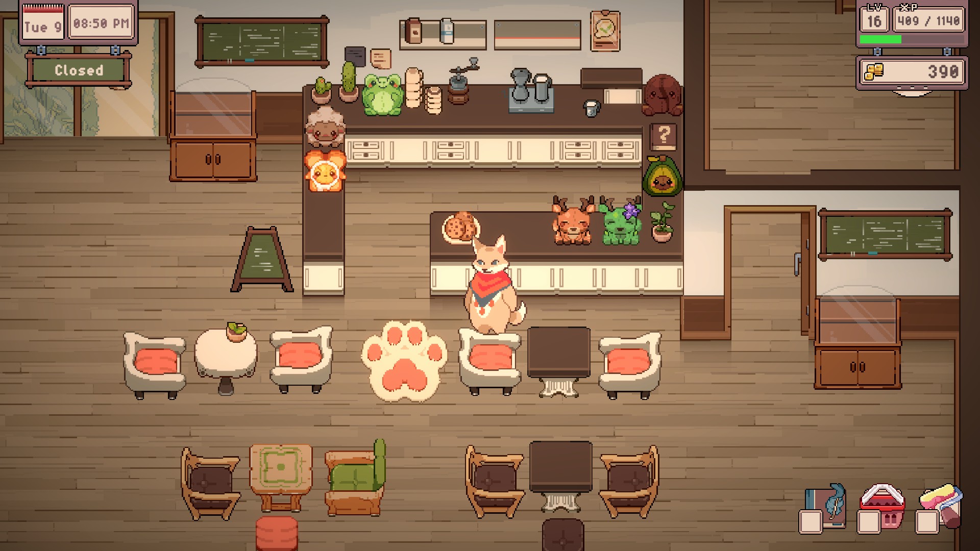Run your own cozy café in Tailside! Brew coffee, decorate your café, and follow small stories in the daily newspaper. Progress through days and levels to unlock new items, skills, villagers, and creature visitors.