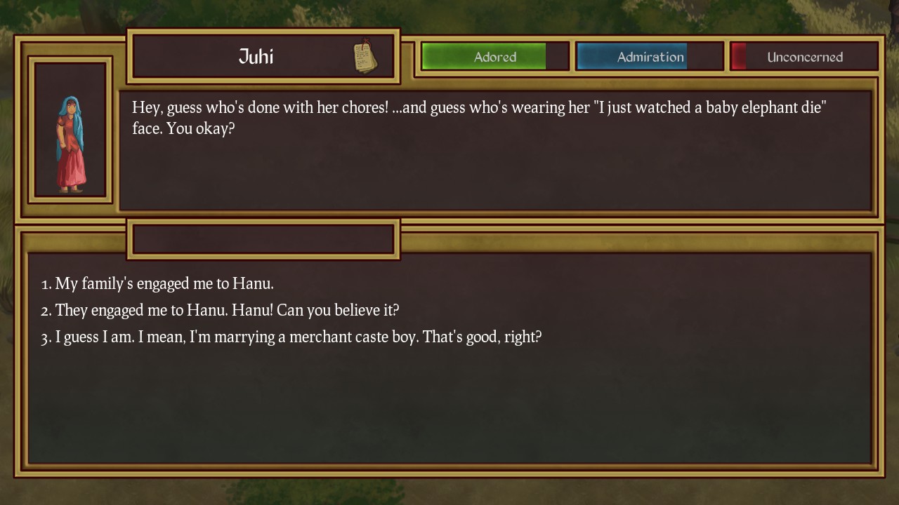 Unrest is a role playing adventure game set in a fantasy interpretation of ancient India that adapts to death, failure, and the choices you make. Play as ordinary people in a struggle for safety, freedom, and a chance at peace.
