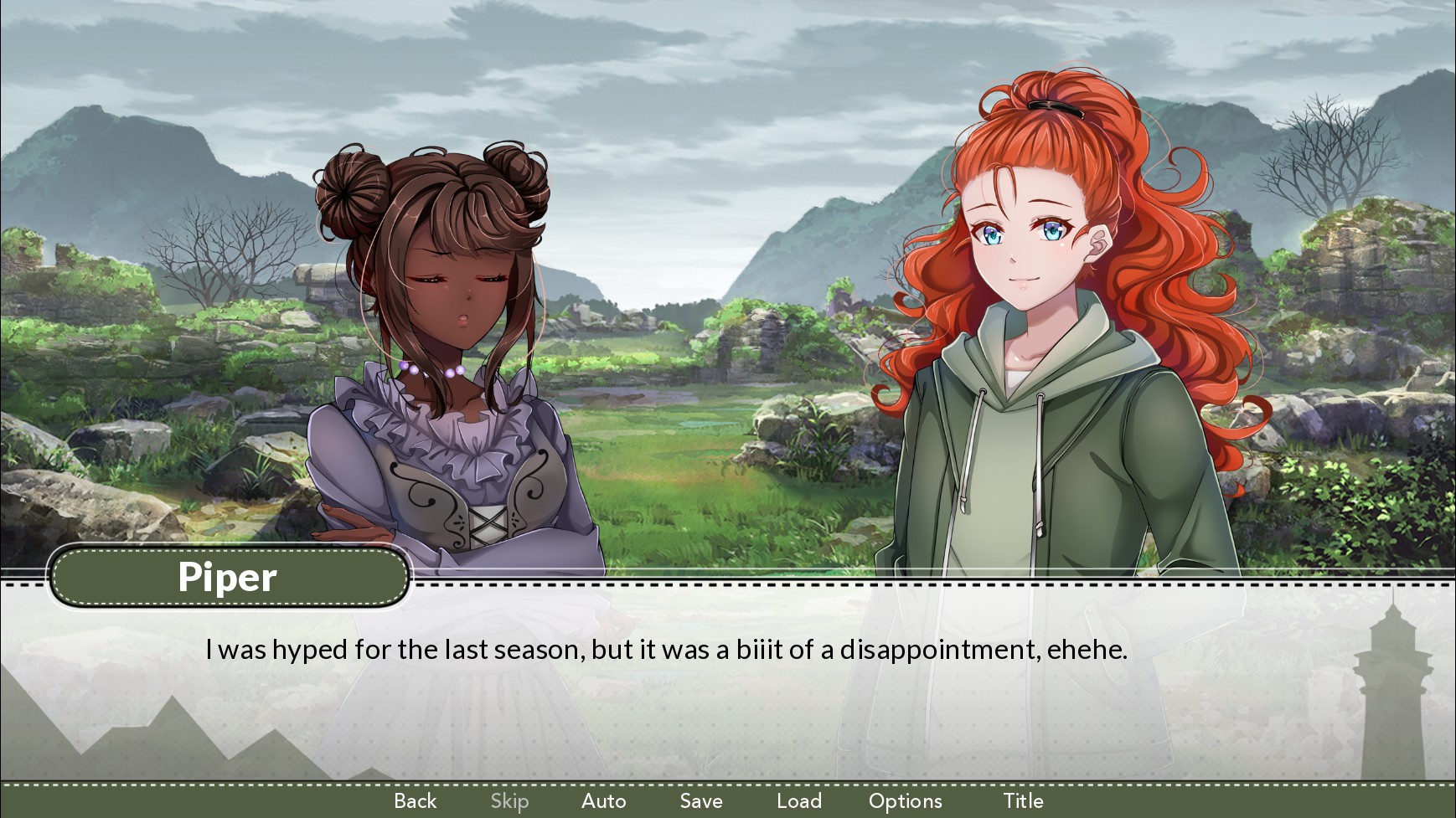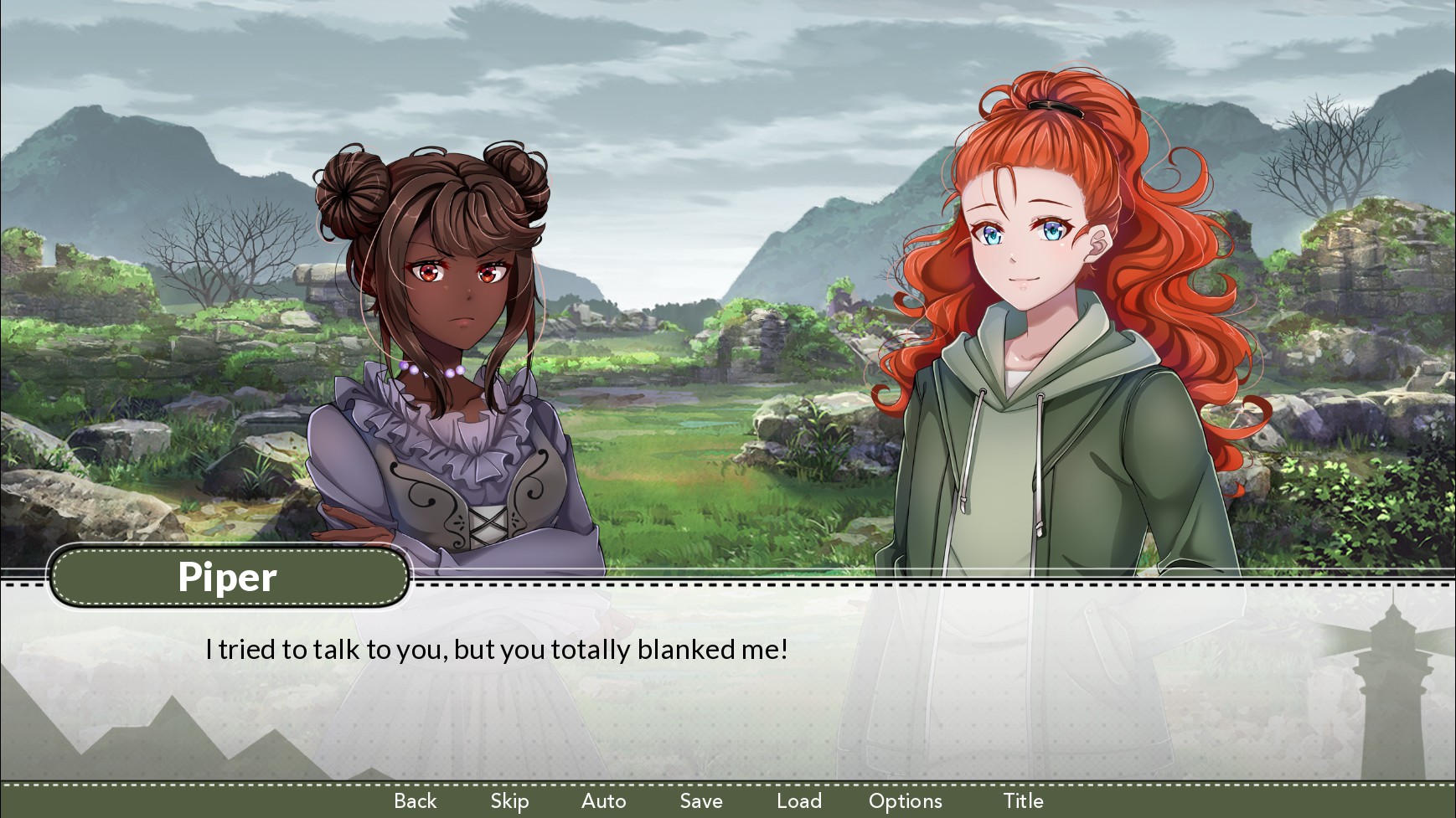 A cute, wholesome yuri visual novel about a haughty young girl called Alice who goes on holiday to the Isle of Skye. Once there, she meets the plucky young Piper, and a romance between the two slowly unfolds.