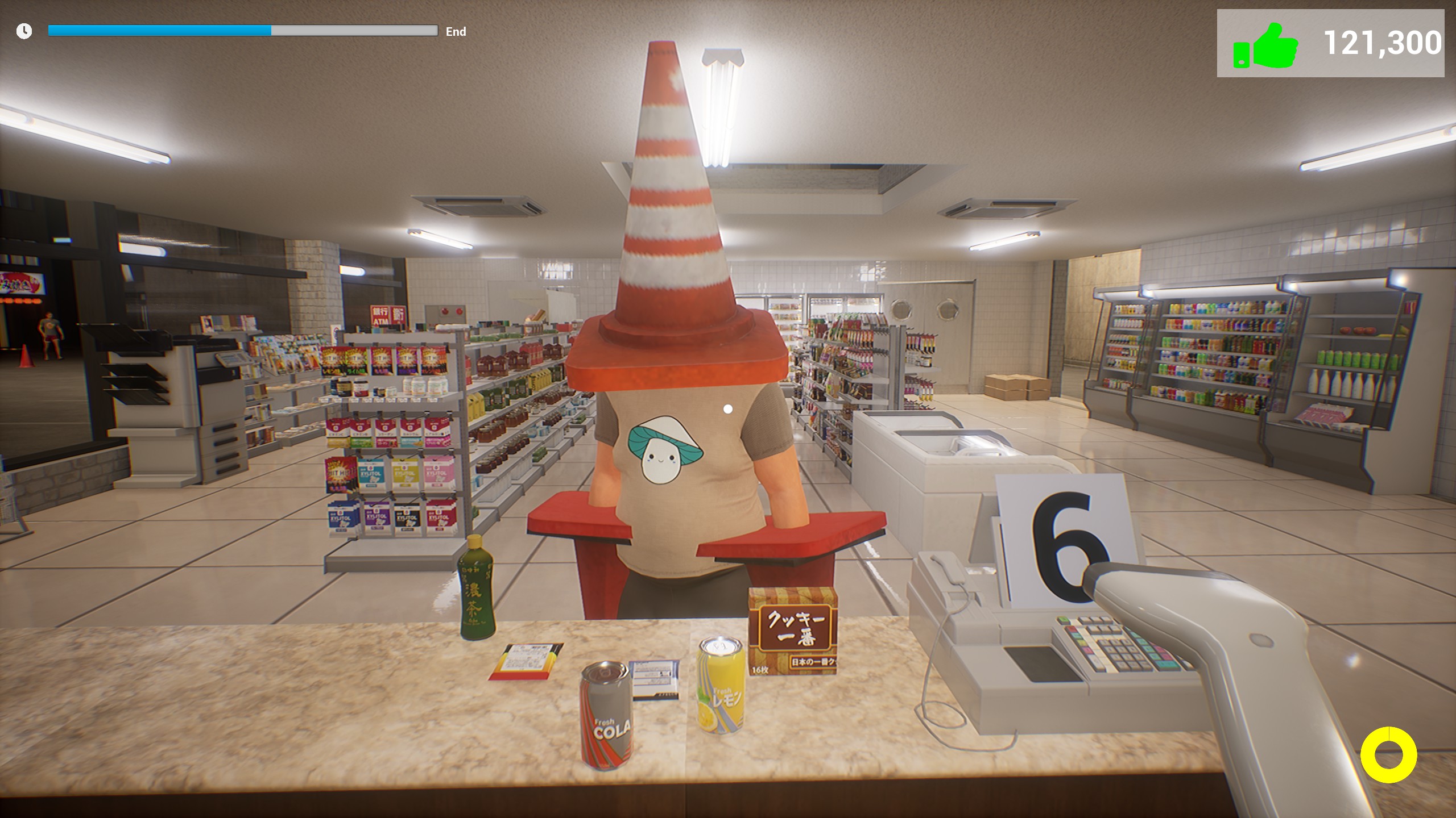This is an action-comedy game where you work part-time at a convenience store register while taking down troublesome "nuisance customers.
