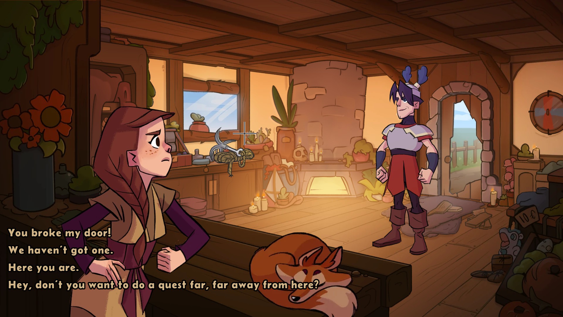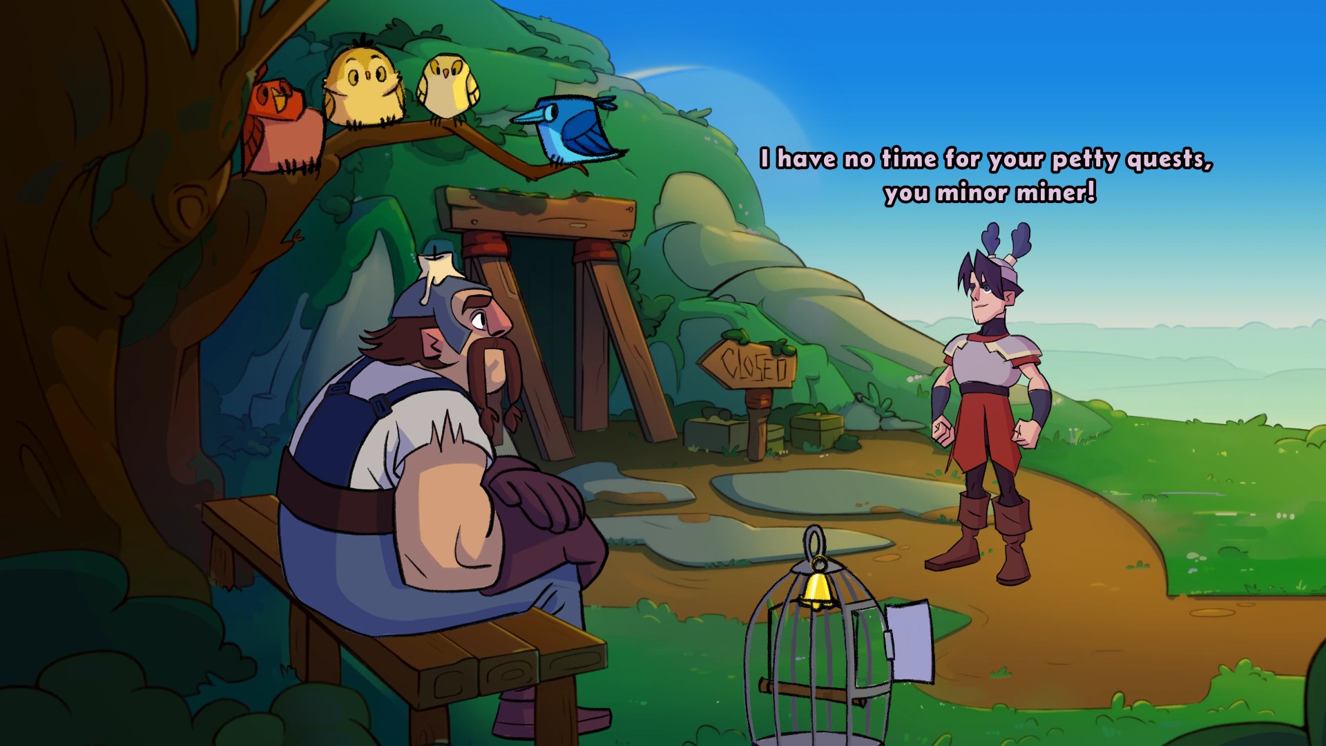 A short adventure game, where you don't control the adventurer. Play the side characters in a medieval village, and decide to help or hinder the adventurer in their mysterious quest.