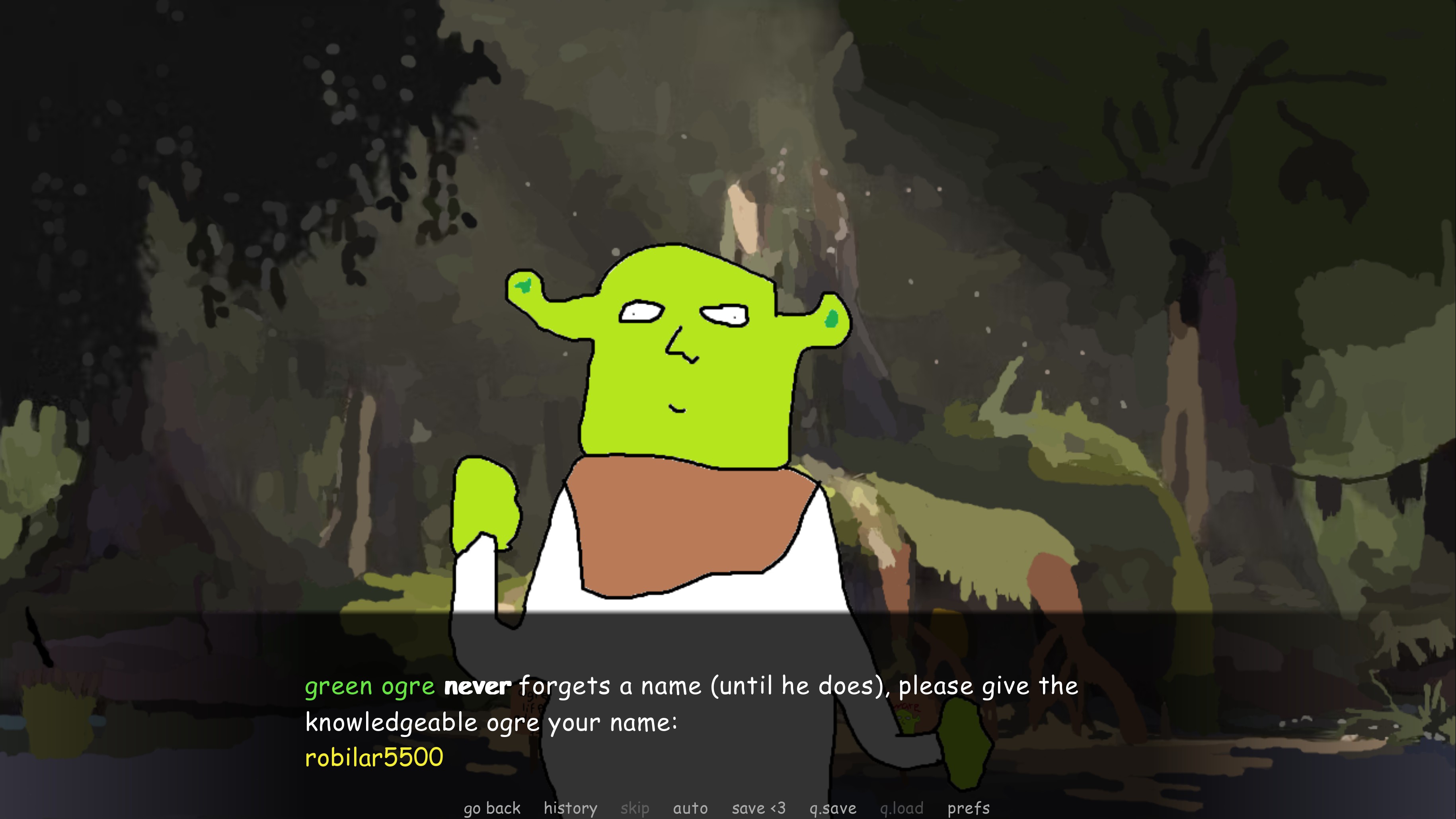 Enter the swamp and meet green ogre who will guide you through some of the struggles of life by giving you some God tier advice.