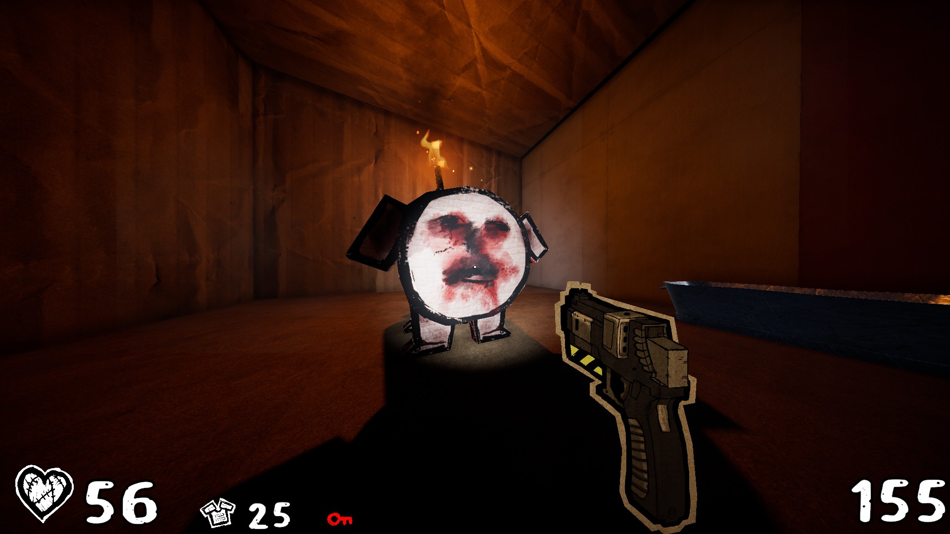 In this cute cardboard world, something went horribly wrong... You wake up in a prison cell. A strange voice calls to you from the depths of dark corridors covered in runic symbols and blood. Reload your trusty shotgun and find out... WHY WOULD CARDBOARD... BLEED?