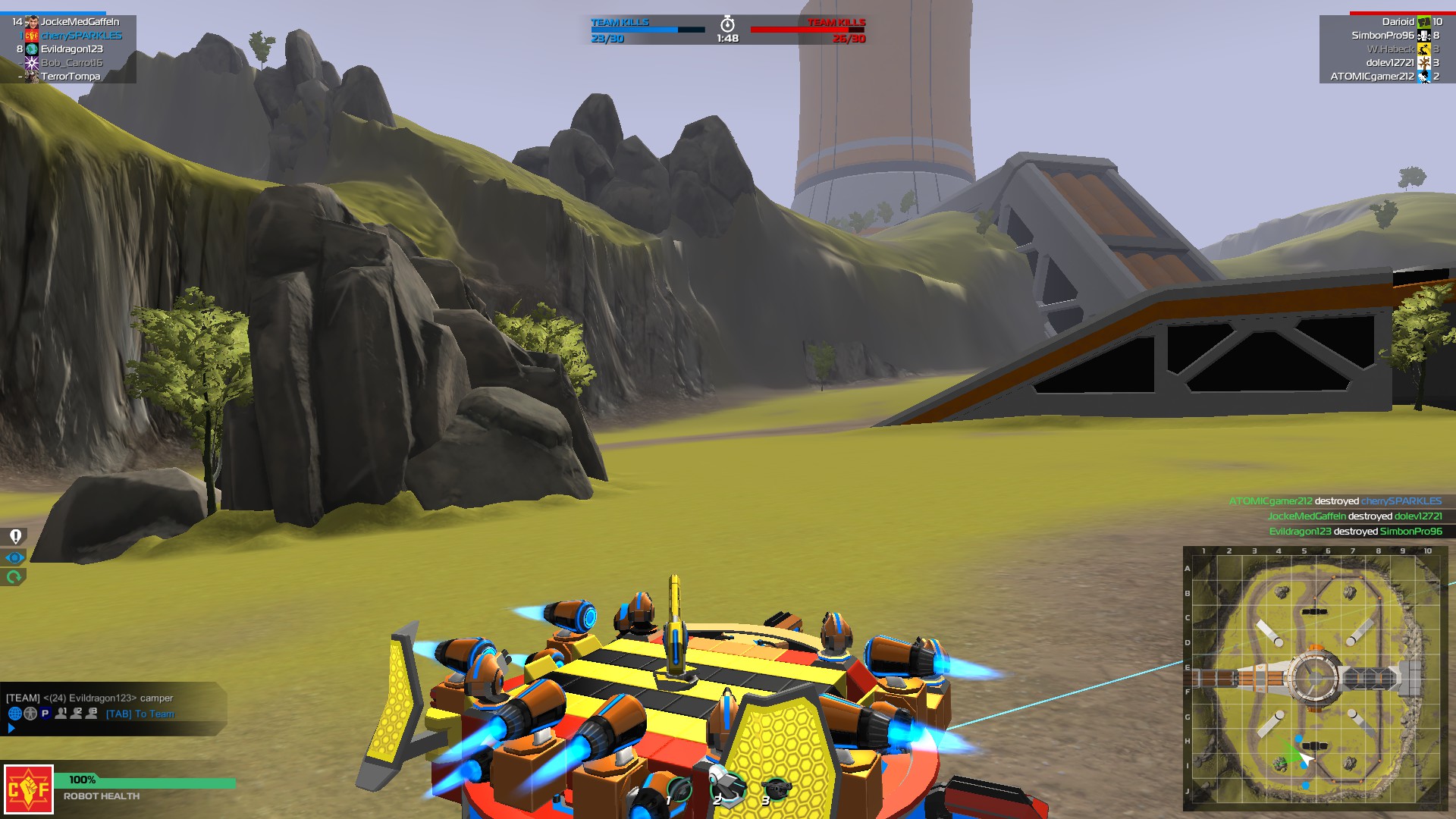 Build insane, fully customisable robot battle vehicles that drive, hover, walk and fly in the free-to-play action game Robocraft. Add weapons from the future and jump in the driving seat as you take your creation into battle against other players online!
