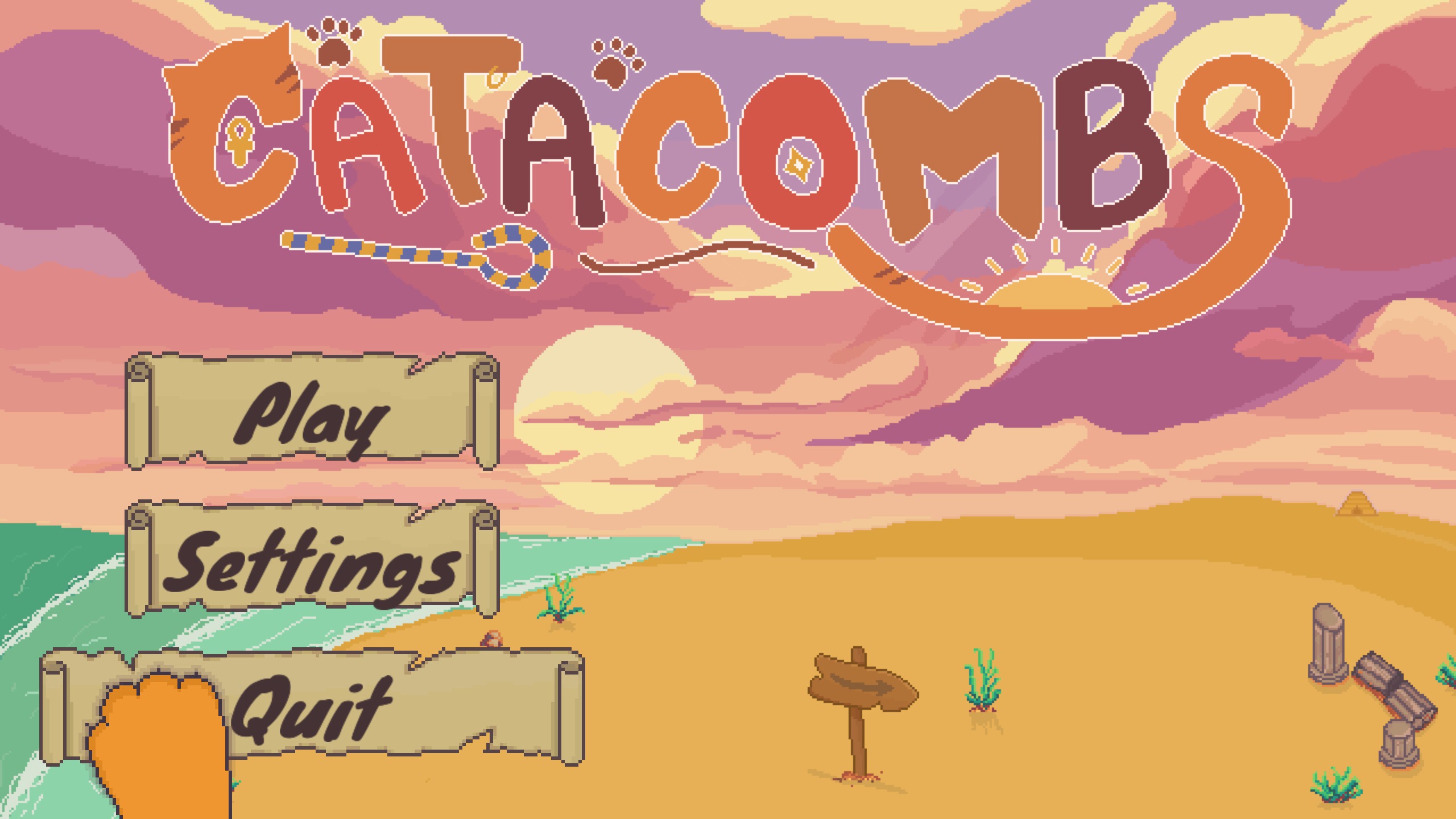In Catacombs, you control Tabby, a street cat on his way to visit a friend in the afterlife. Unfortunately, Osiris himself forbade your entry and ordered his minions to stop you. Venture deep into the catacombs, pouncing to assume control over his minions, all to foil the will of the gods!