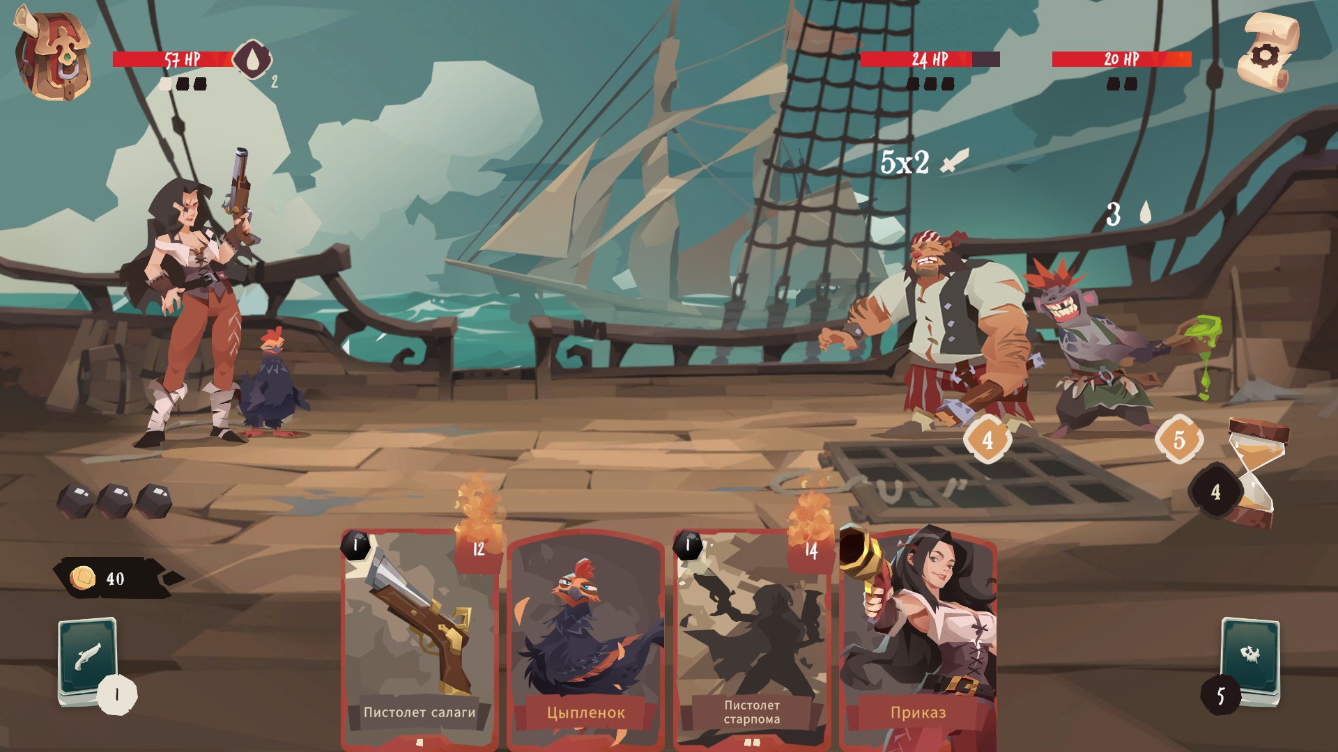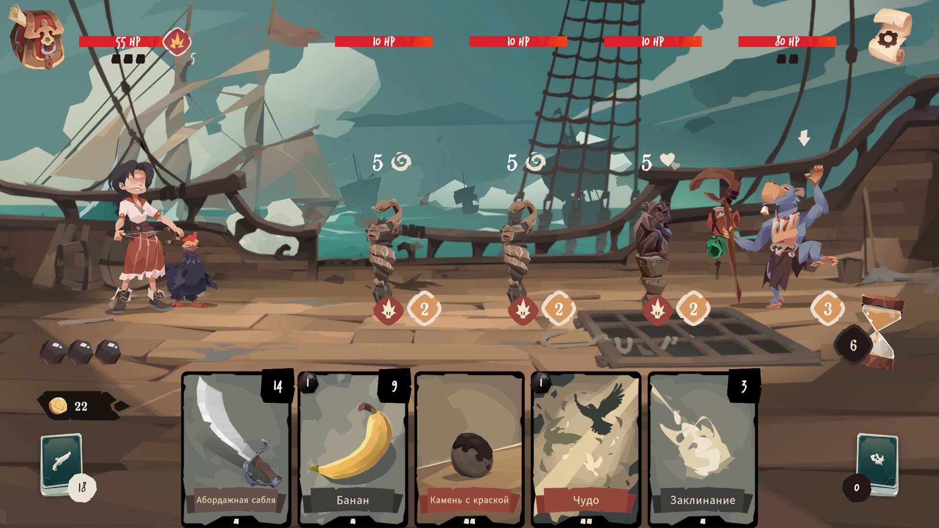 Pirates Outlaws 2 is a swashbuckling roguelike deckbuilder. Collect & fuse cards, gather powerful relics and adapt your strategy during each run. Become a reputed pirate, loot the Sea Masters, challenge giant creatures and triumph in the great Arena!