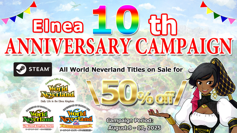 To celebrate the 10th anniversary of "World Neverland - Daily Life in the Elnea Kingdom" (iOS version), we are holding a special anniversary campaign!
