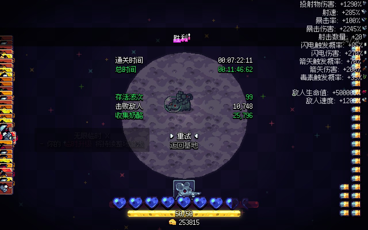 Rocket Rats is a survivors-like game where you defeat cheese-based astral bodies in space – as a rat! Clear waves of enemies, collect cheese, upgrade your gear, and conquer the moon!