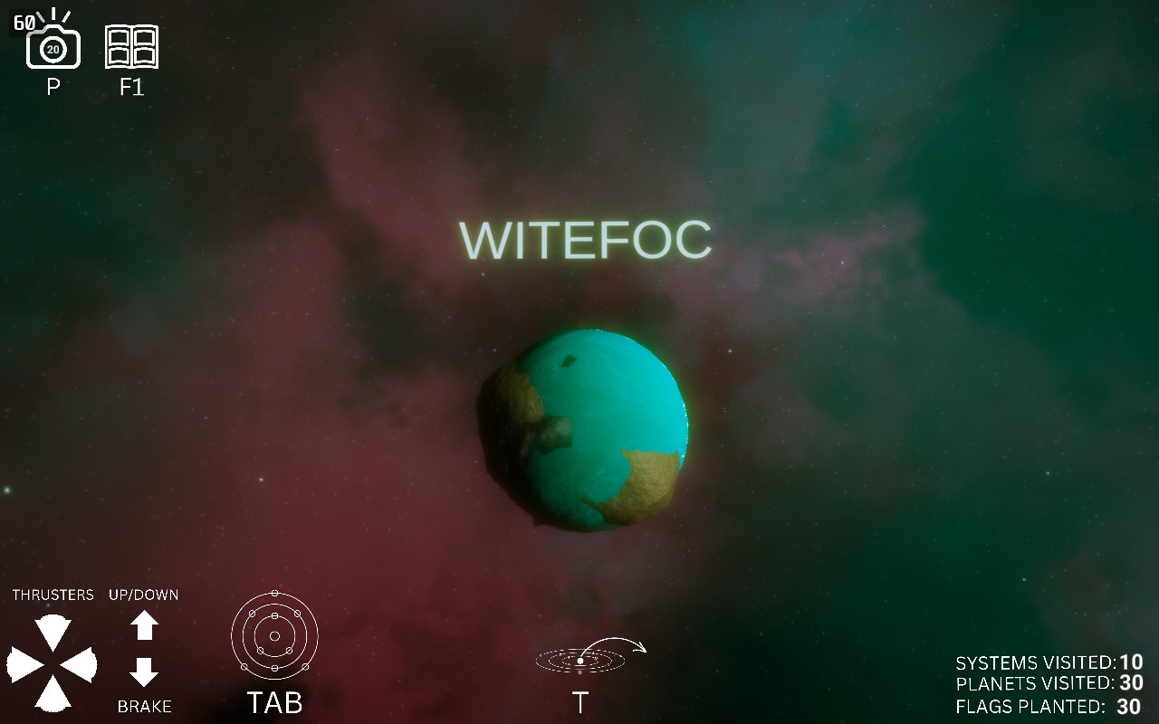 Space Tourist is a chill, mechanic-lite, easy space exploration game designed for tired gamers who love to discover beautiful worlds without overwhelming systems or steep learning curves. Explore space. Land on new worlds. Plant flags. Take photos. Relax.