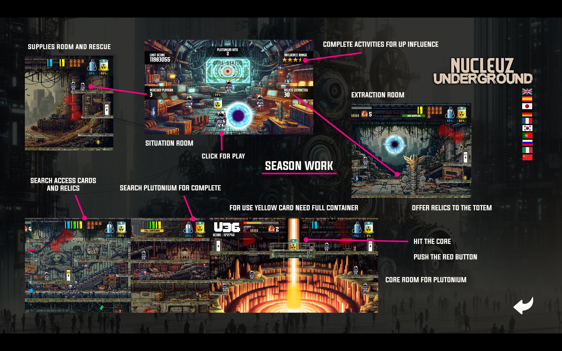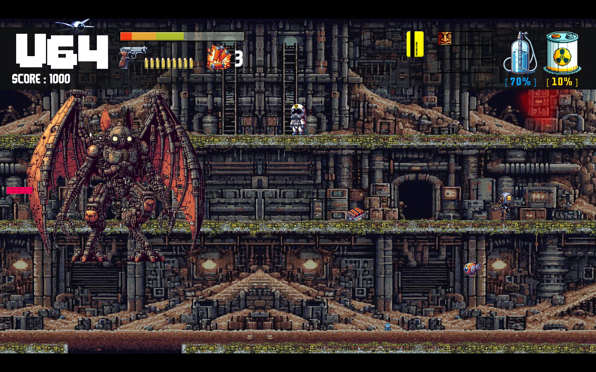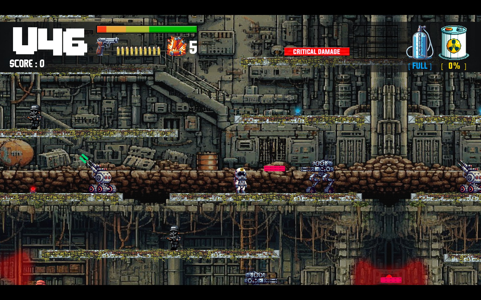 The planet is dying, a team has been created that has to go underground, in the exile of the machines and hit the core. Only in this way, humanity will be able to survive and we have the mission to do so every day. A classic 2D platform game, in a dystopian and survival future. Join the team. Now.