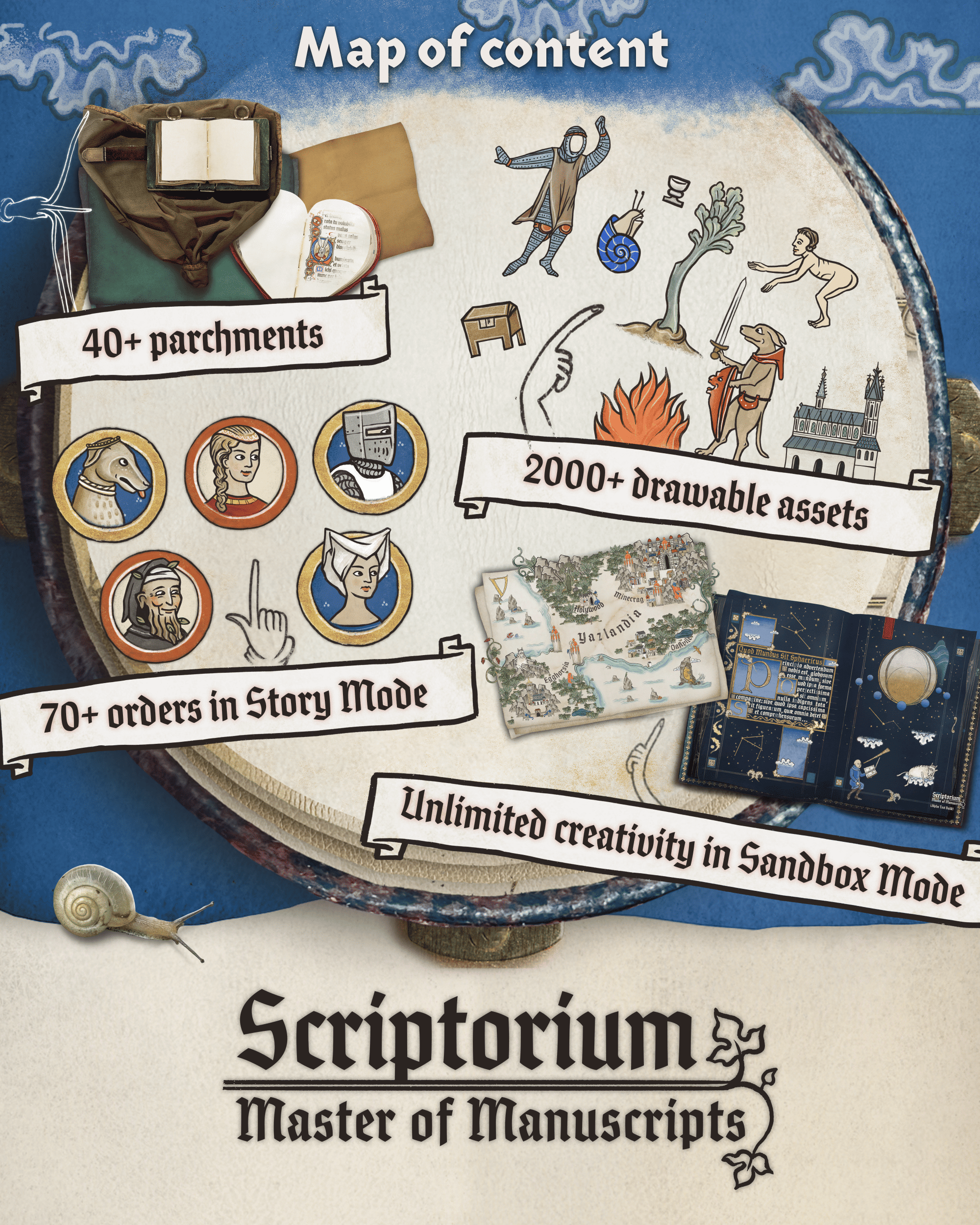 Make and share the most beautiful and bizarre medieval art imaginable! Manage and grow your manuscript workshop by illustrating manuscripts, using friendly tools and a massive range of drag-and-drop artworks from the deepest reaches of history. Welcome to your very own Scriptorium!