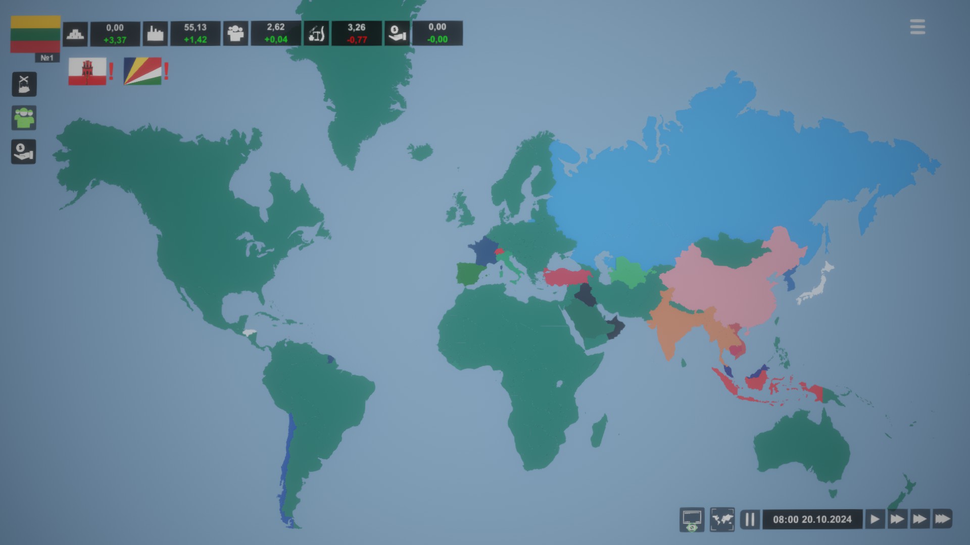 This game is a global strategy game that gives you the opportunity to play for countries in the modern world. Here you will be given a choice of 198 countries for which you can play.