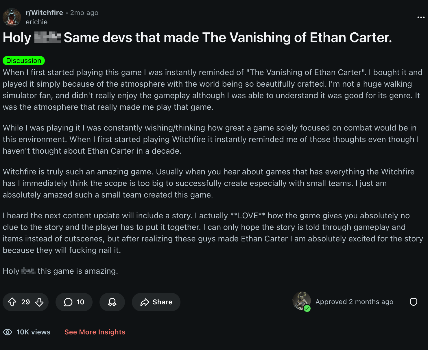 Just an intense moment in Witchfire - Reddit