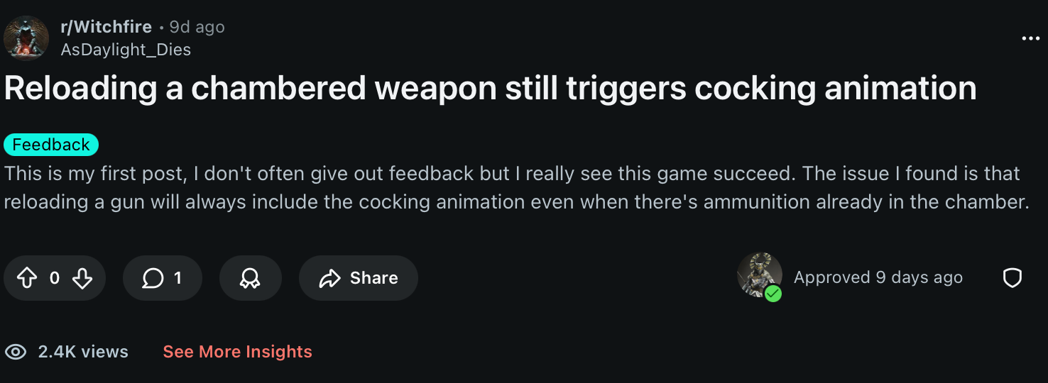 Reloading a chambered weapon still triggers a cocking animation - Reddit