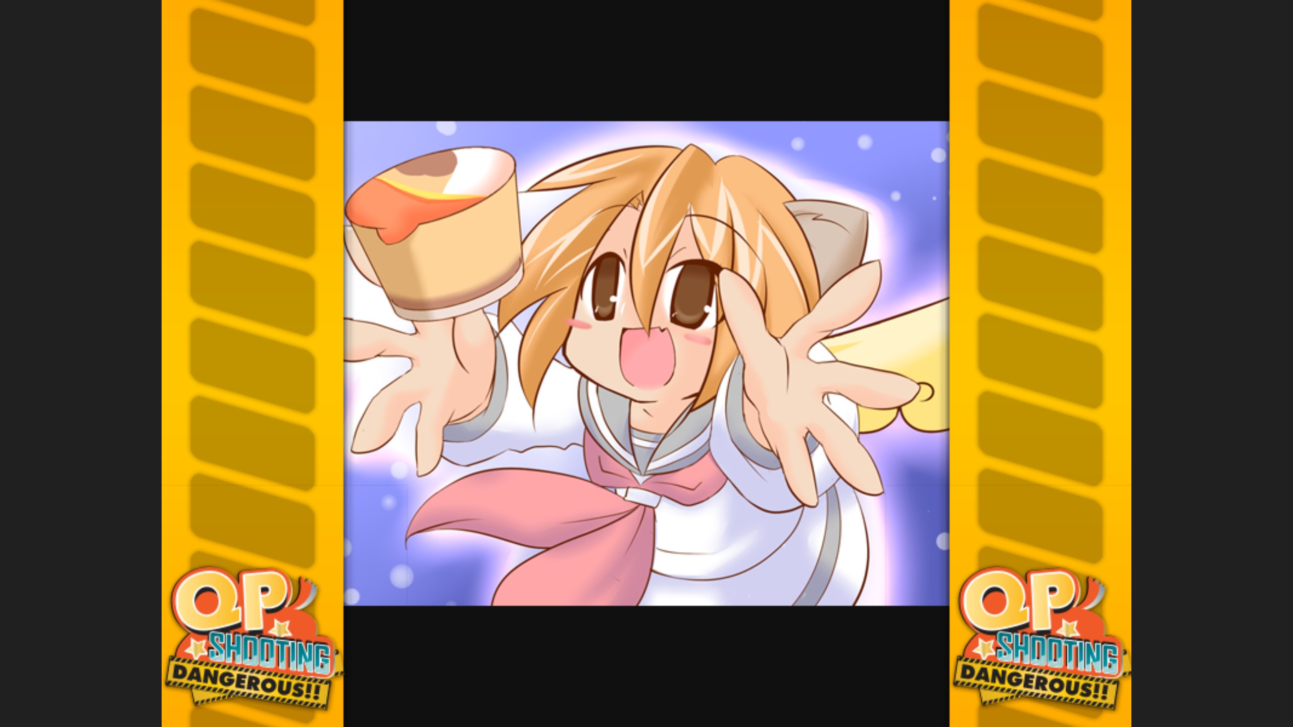 QP Shooting - Dangerous!! is a bullet hell type shoot’em’up starring the pudding-loving dog girl QP seen in 100% Orange Juice. Nothing can stand between QP and her pudding - not even difficulty options to reduce the experienced gamer to tears!