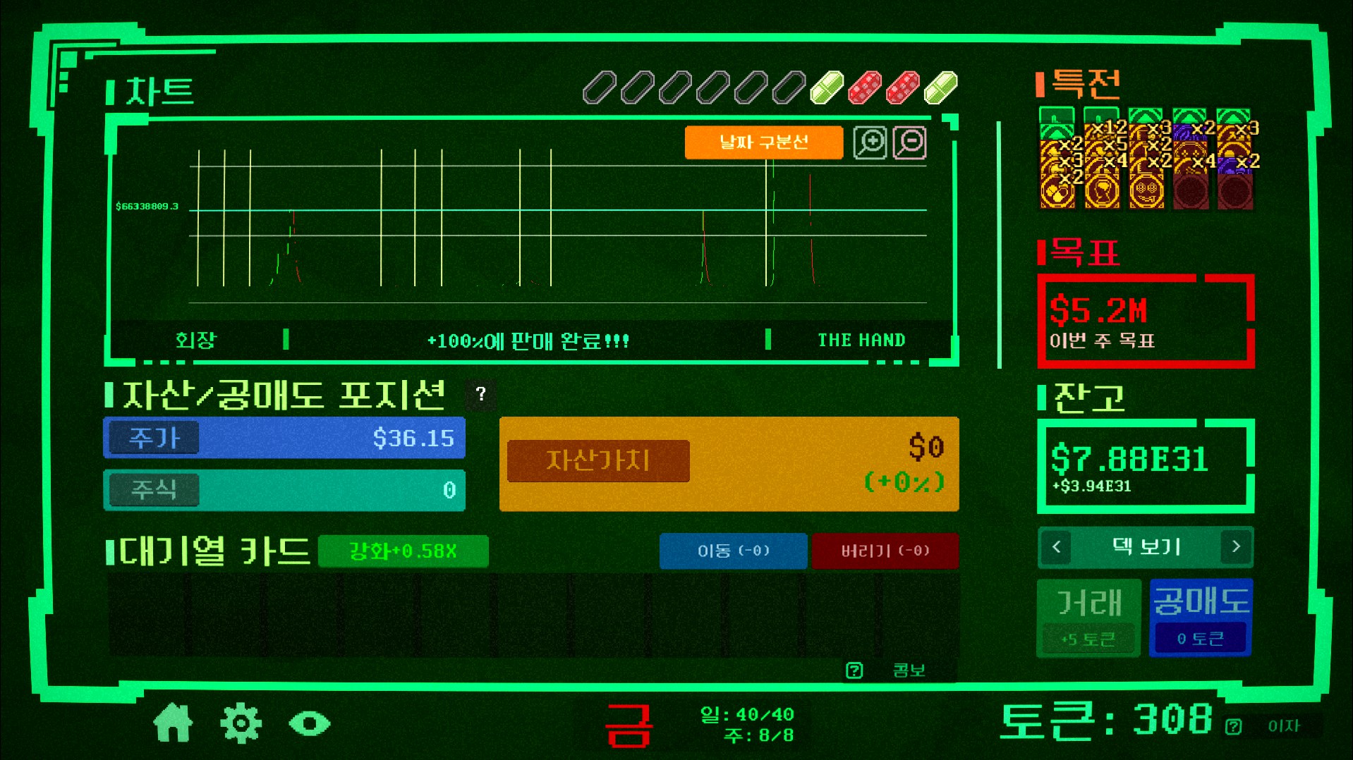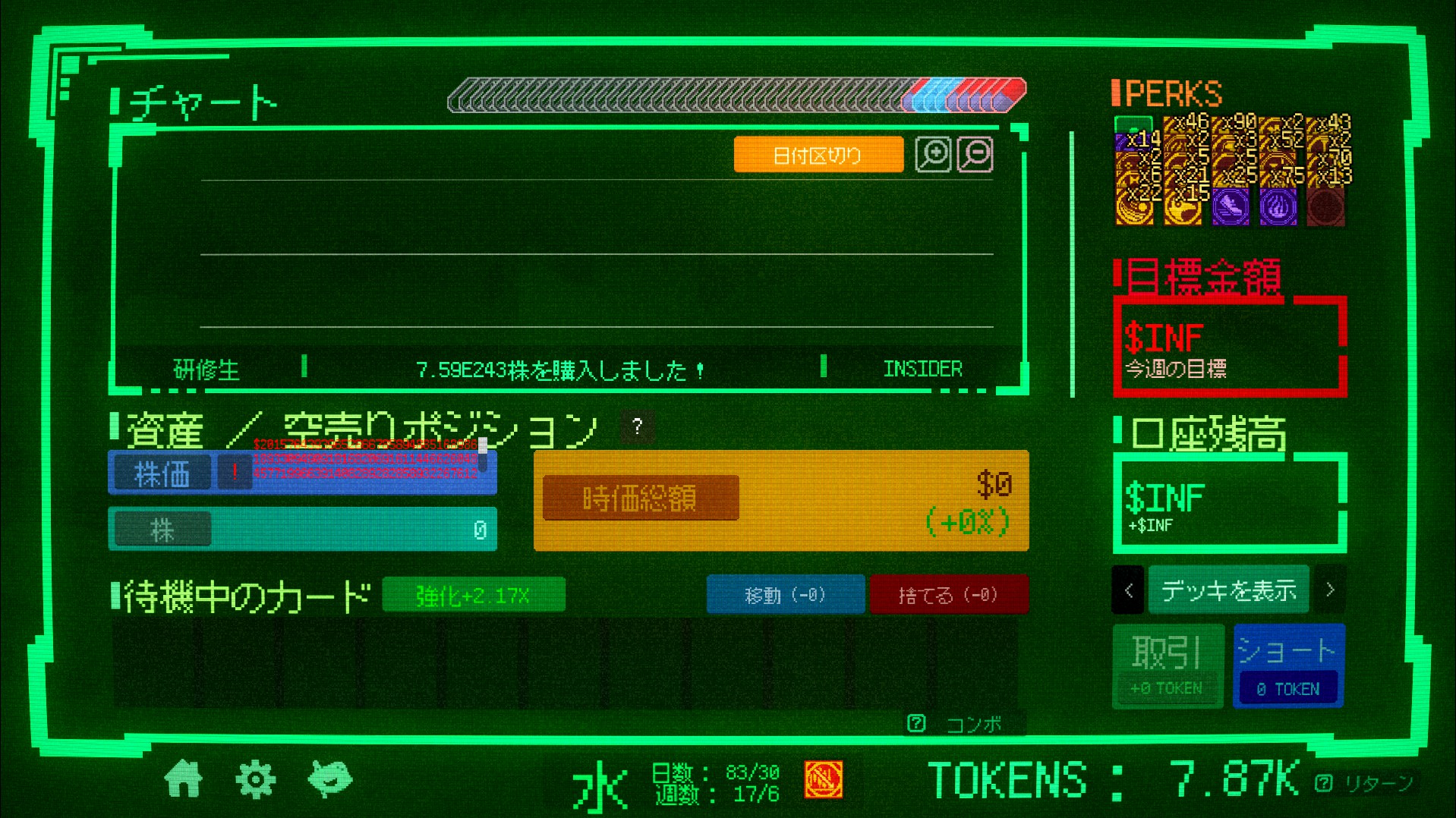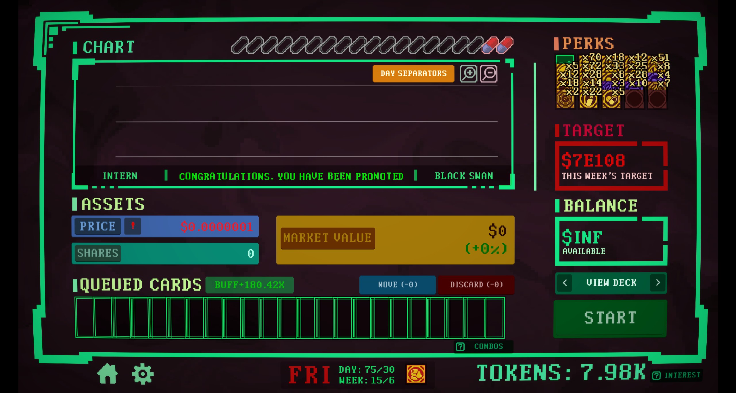 Insider Trading is a roguelike deckbuilder where you bend the market to your will. Synergize perks, manipulate stock prices, and trade wisely or risk pricing yourself out.