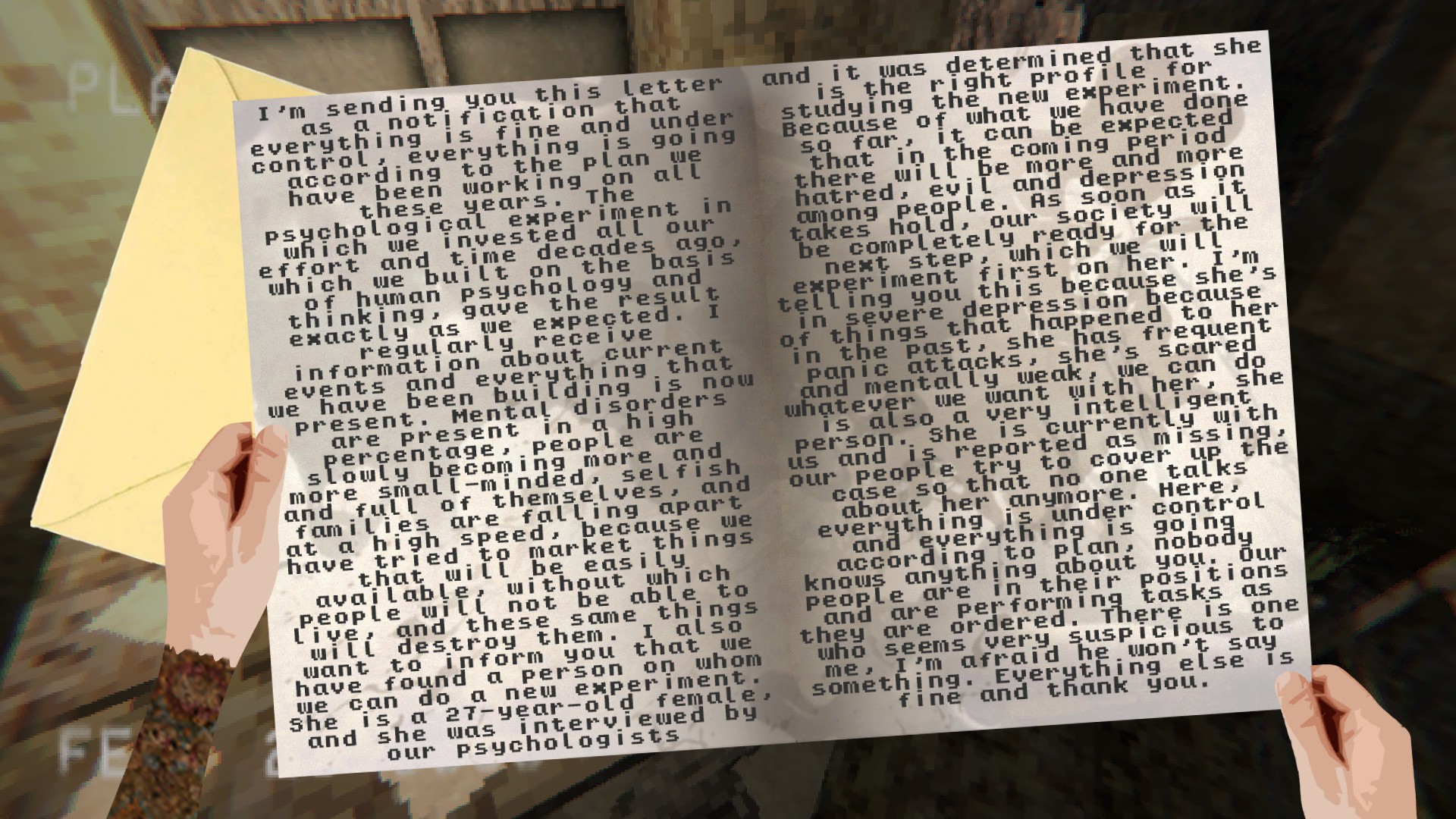 Experience a unique psychological horror set in the 90s with retro style. Solve complex puzzles and uncover ominous rituals of a secret society. Immerse yourself in someone else's past and feel deep emotional pain and fears. Face your own demons and uncover dark secrets that will keep you on edge.