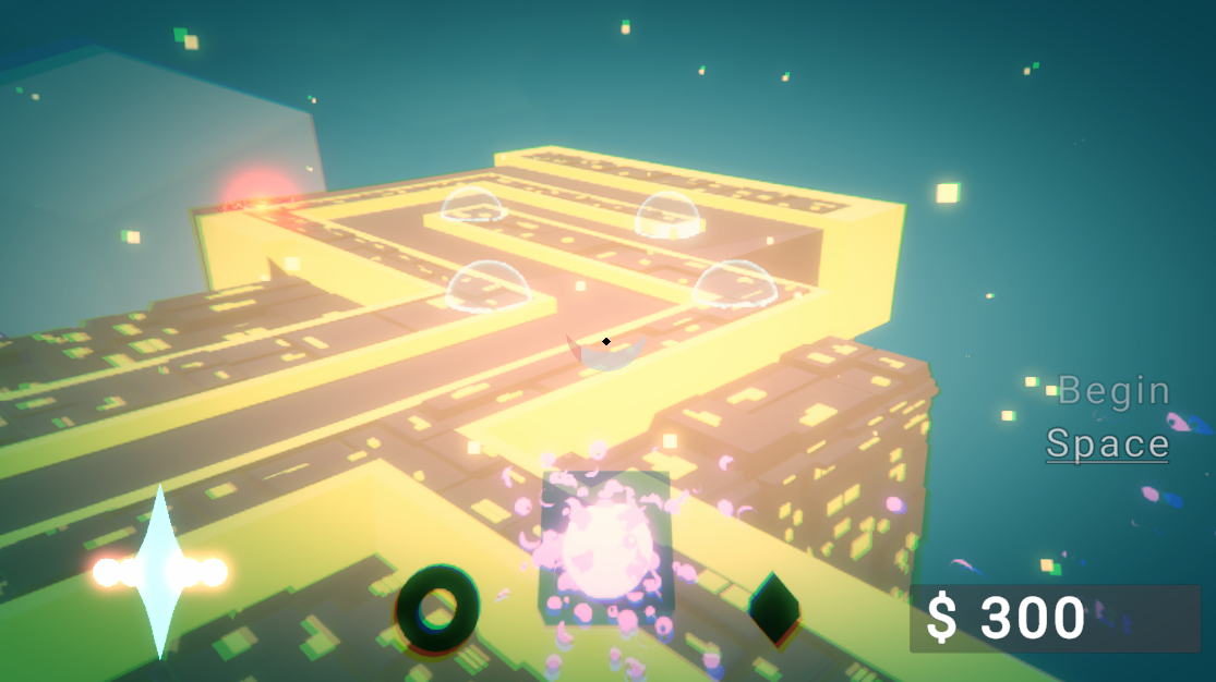 A Tower Defense Action game, set in a bright geometric world. Combine shooting skills with strategic thinking to fight off waves of enemies, and defend your base.